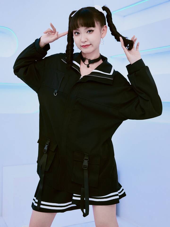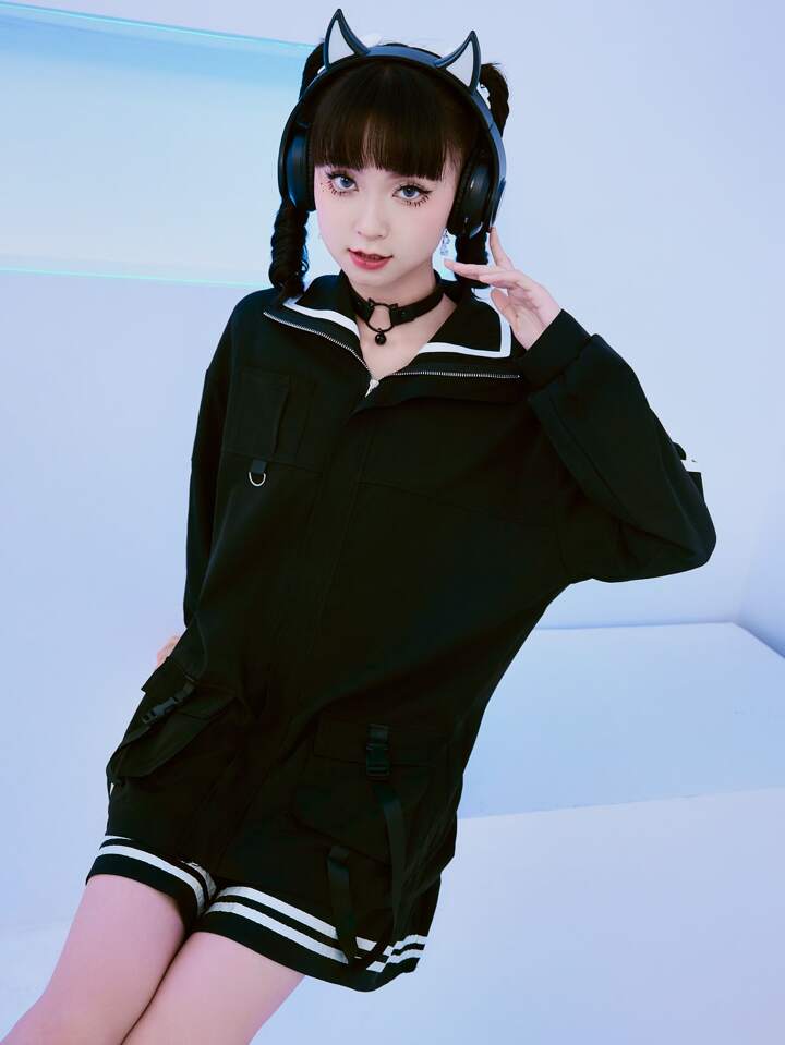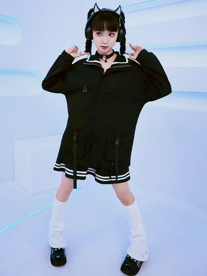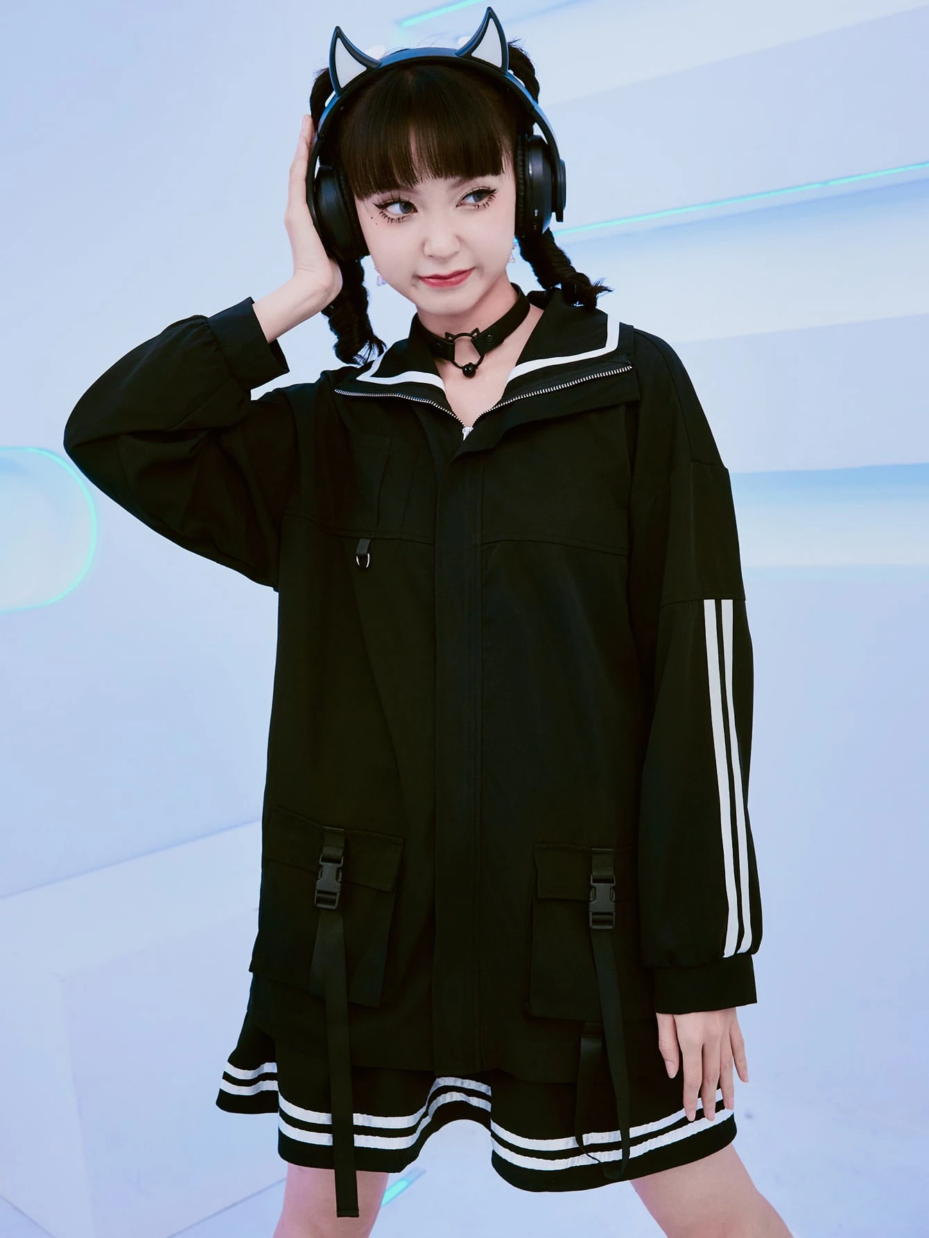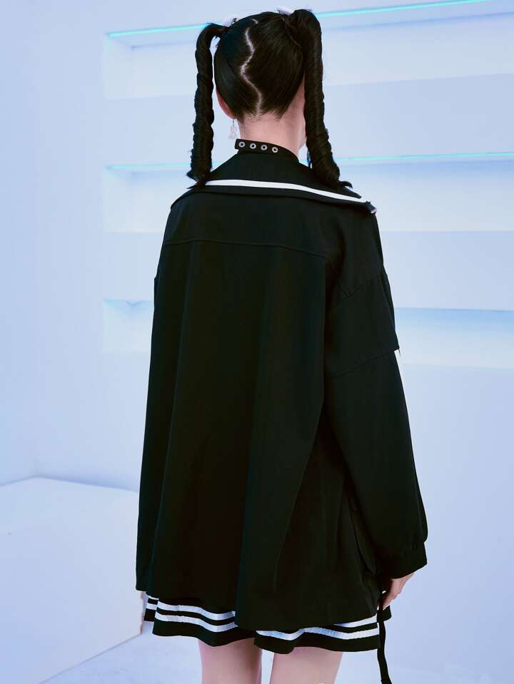 Abrigo con cinta de rayas con bolsillo con solapa de hombros caídos