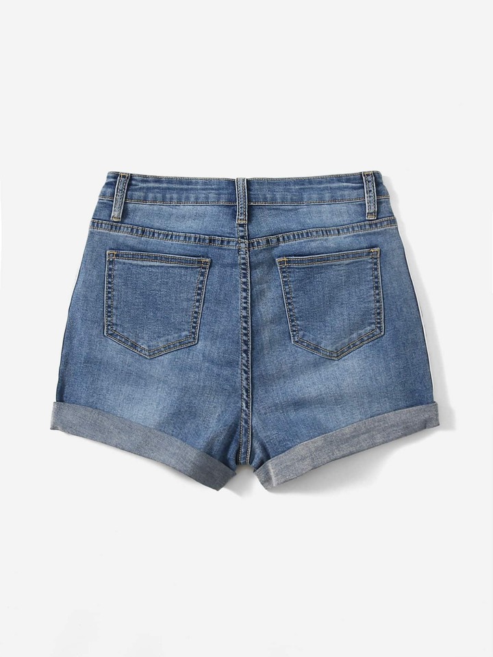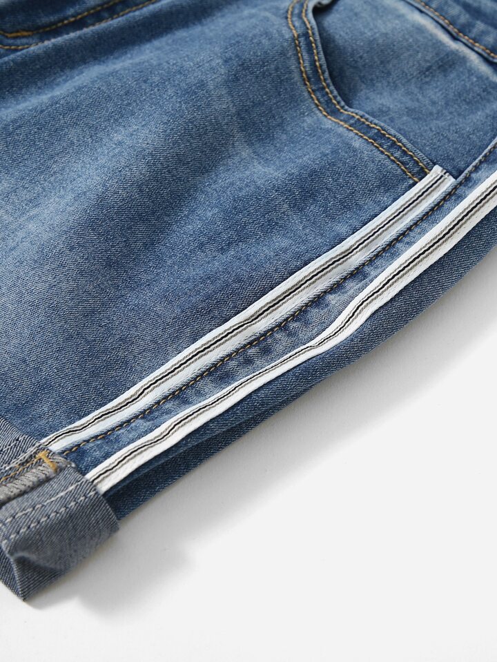 Shorts en mezclilla con cinta de rayas lado bajo doblado