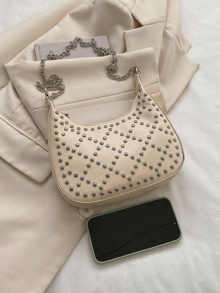 Bolso hobo con diseño de tachuela moda con cadena con tira