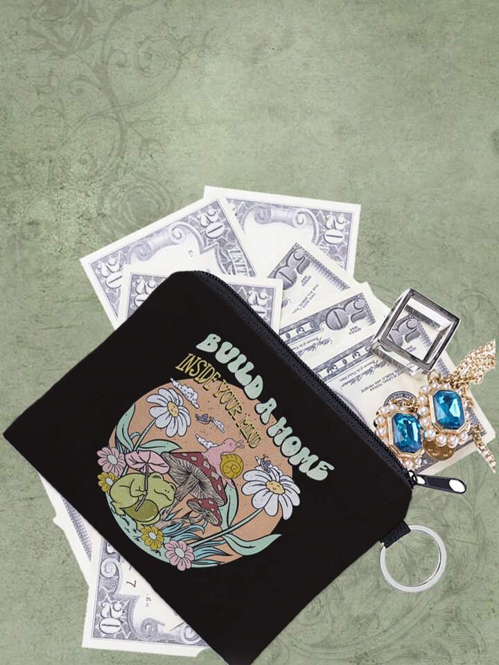 Studio Chunk Fairycore Monedero de rana de dibujos animados con con estampado de seta cremallera