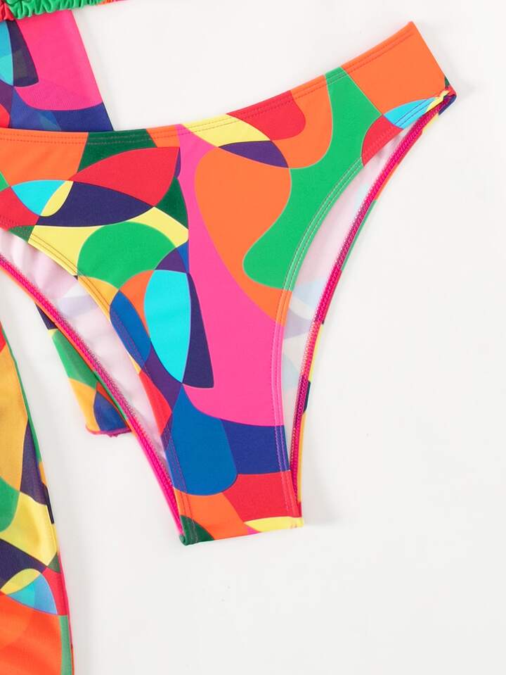 Conjunto de bikini estampado integral de playa de verano con cubierta