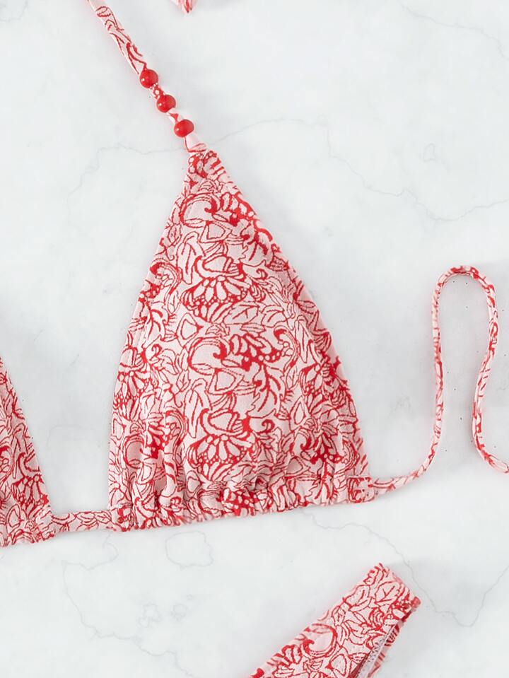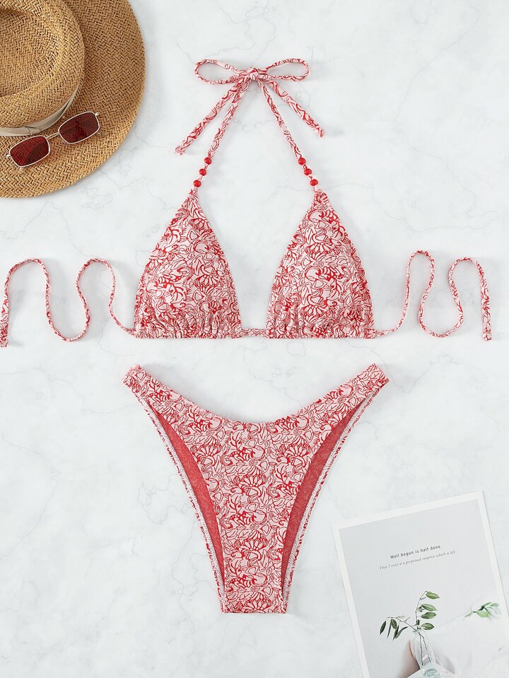 Conjunto de bikini de triángulo halter con estampado completo para playa en verano