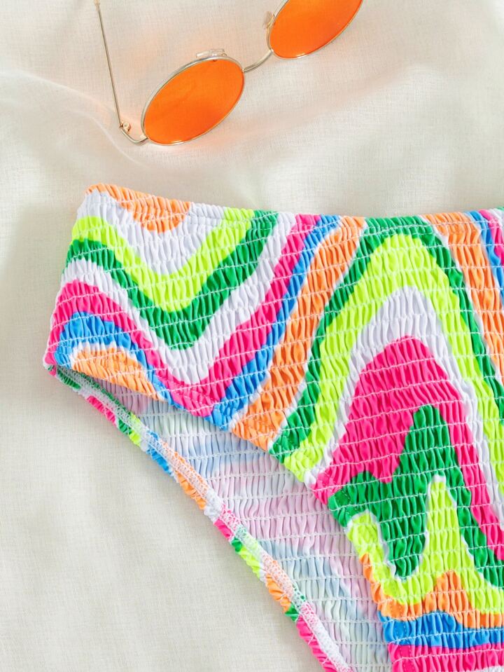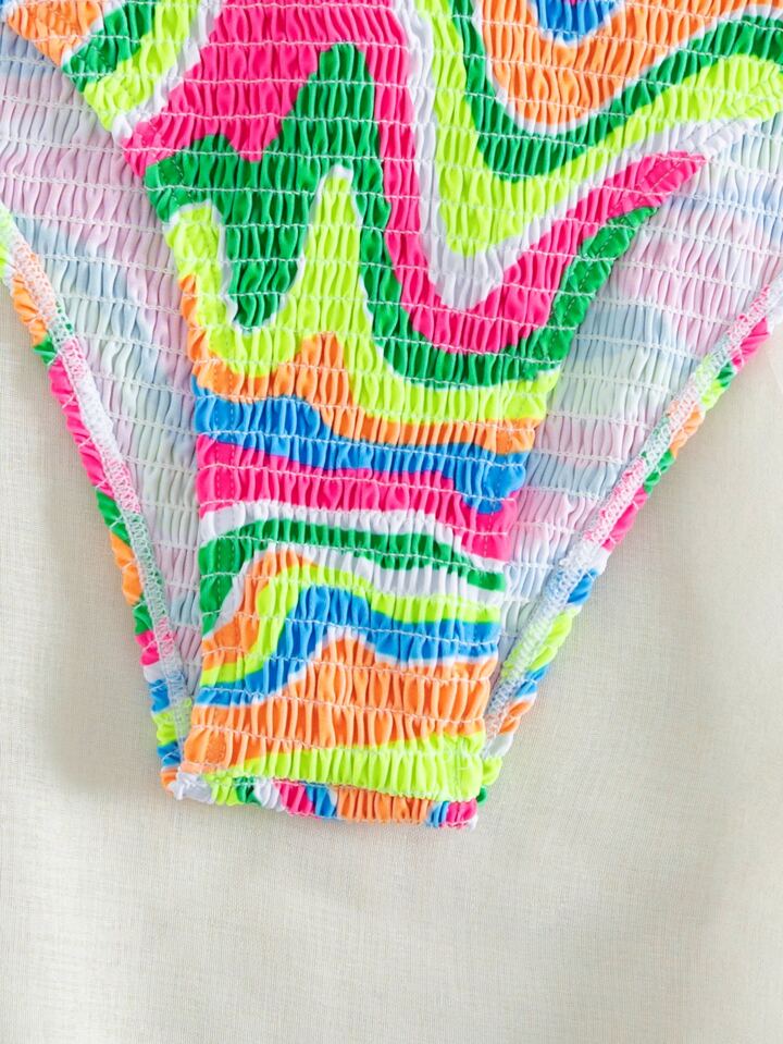 Bottom de bikini Shirred de estampado de mármol de la playa de verano en neón