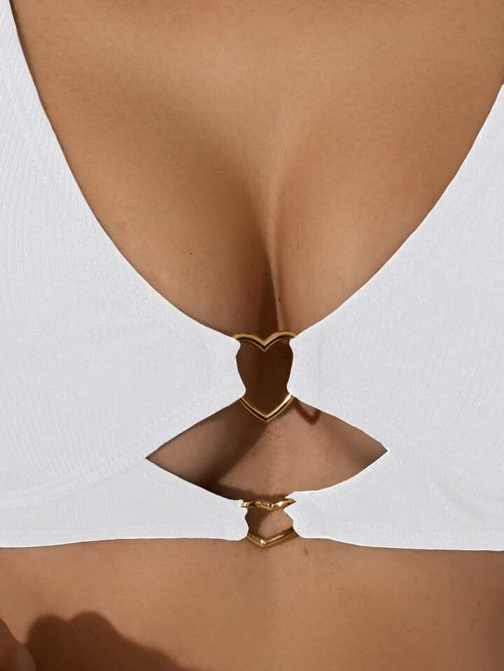 Top bikini tejido de canalé vinculado con aro con abertura delantera