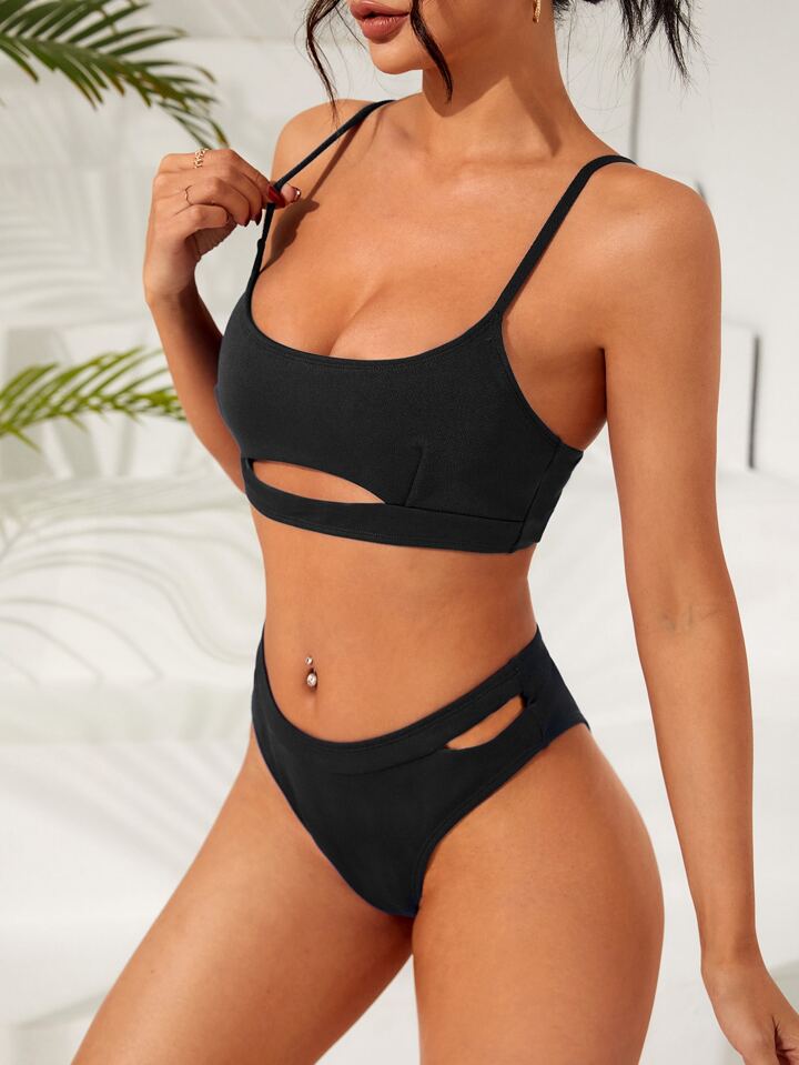 Conjunto de bikini unicolor Sujetador de cami recortado y parte inferior de bikini recortada Traje de baño de 2 piezas