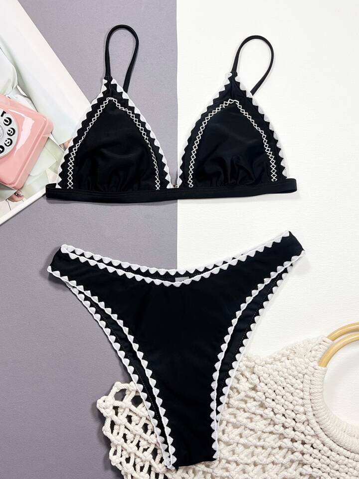 Conjunto de bikini de triángulo con puntada de látigo para playa de verano