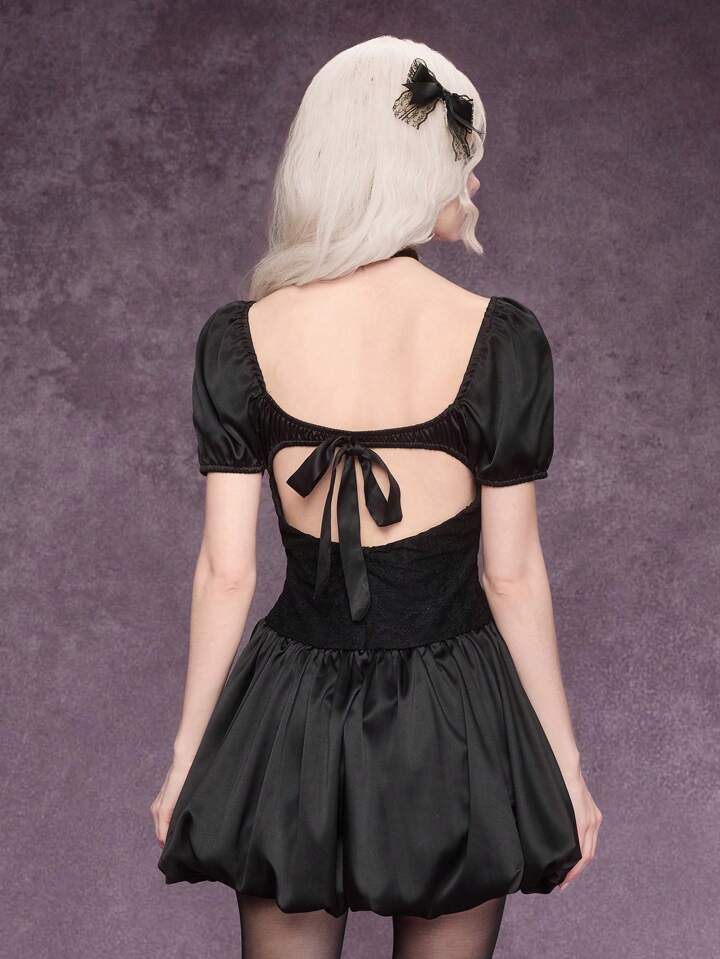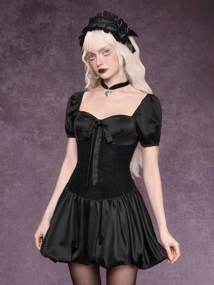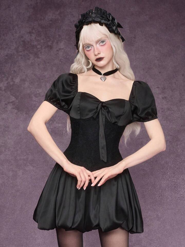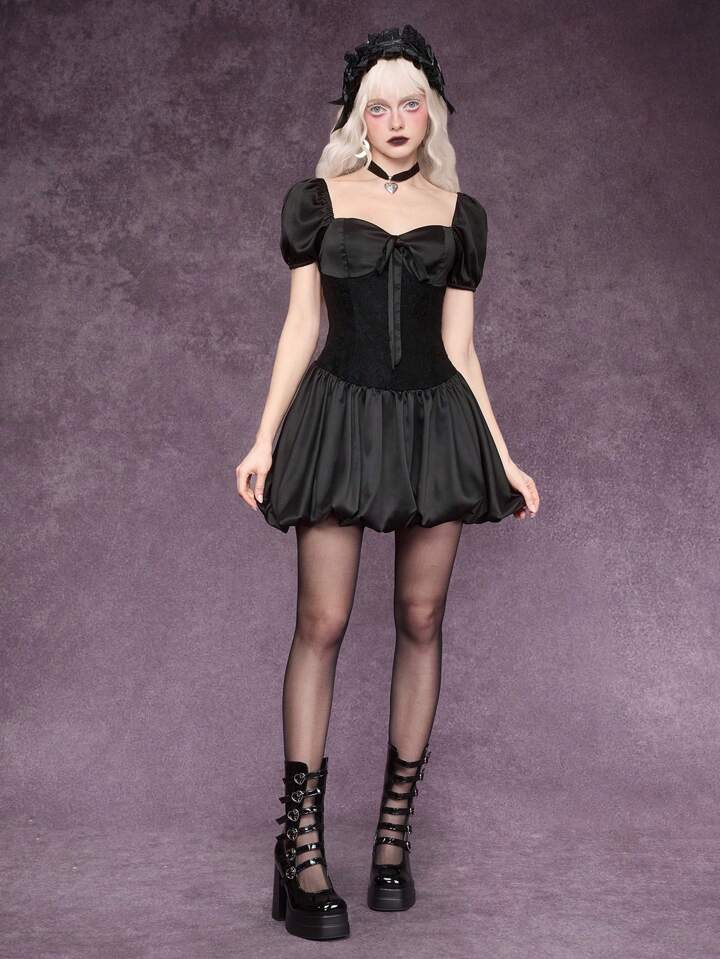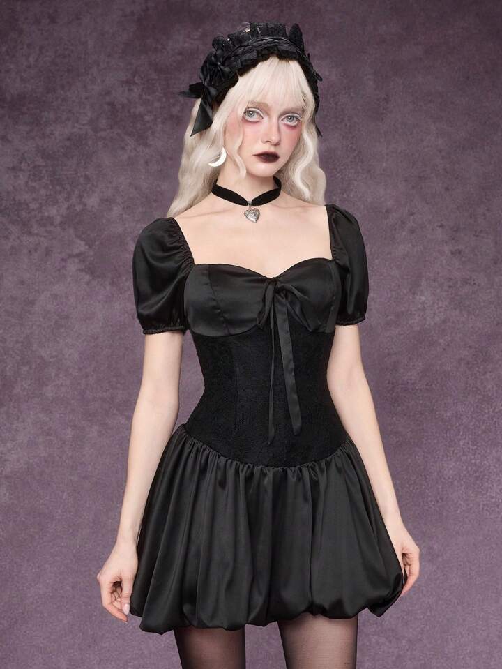Goth Vestido mini con volantes, lazo y estilo gótico para mujer, ropa de verano