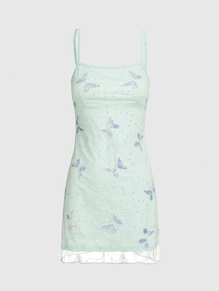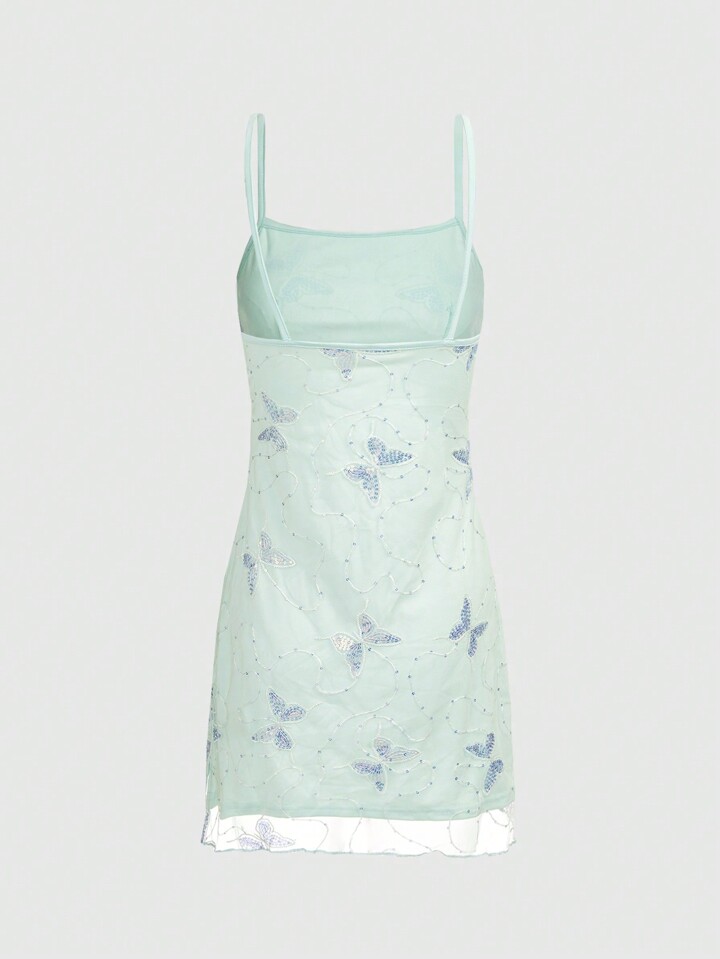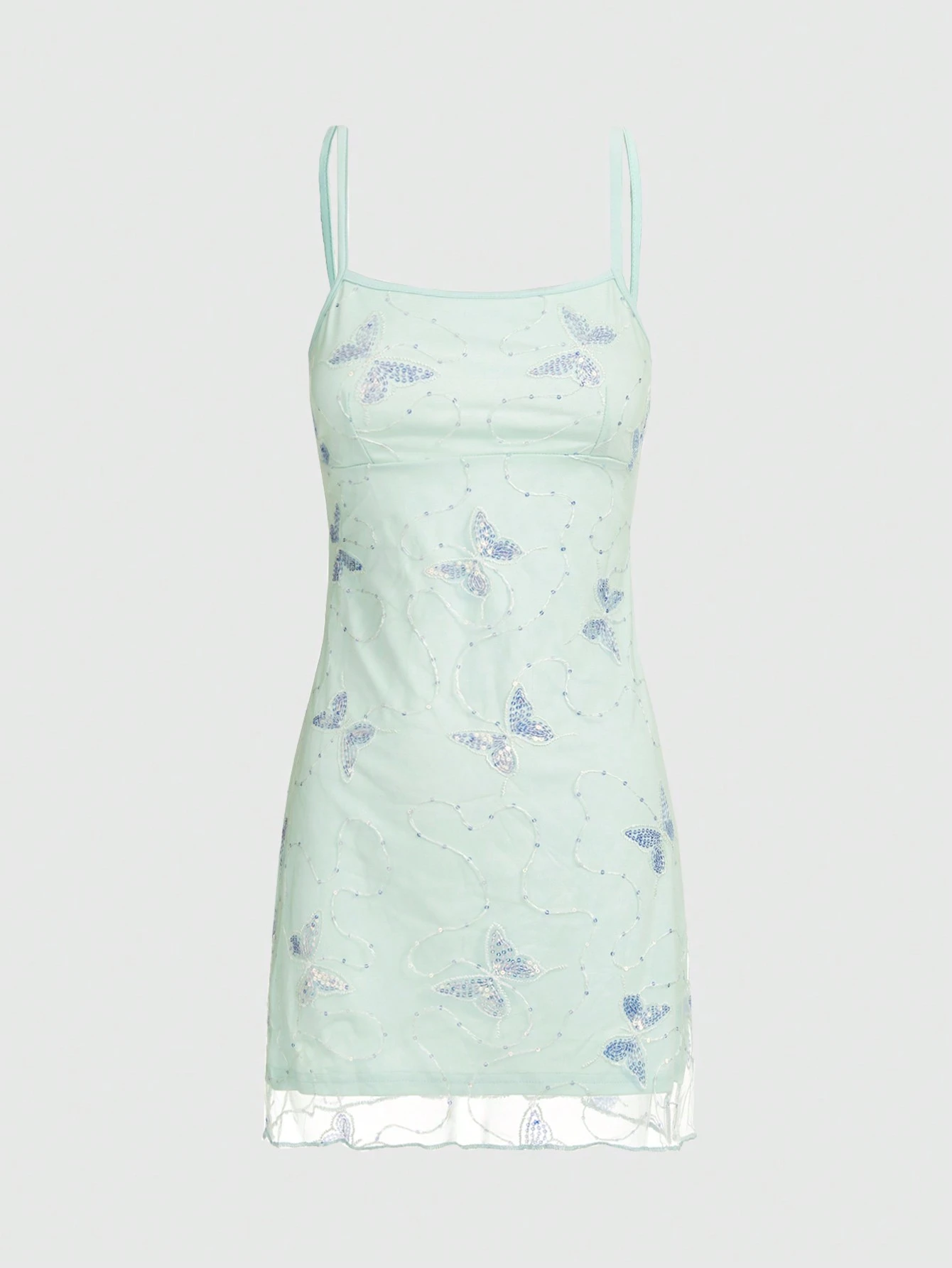 Vestido camisero de verano elegante con bordado de mariposas con lentejuelas