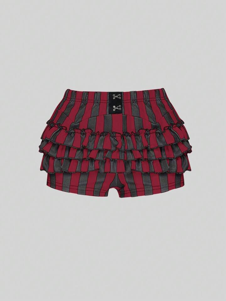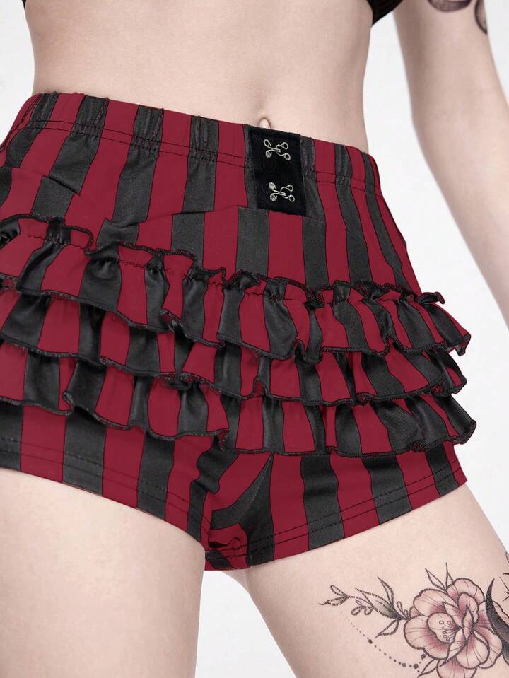 Goth Shorts de falda de pastel a rayas negras y blancas de estilo gótico de verano para mujeres