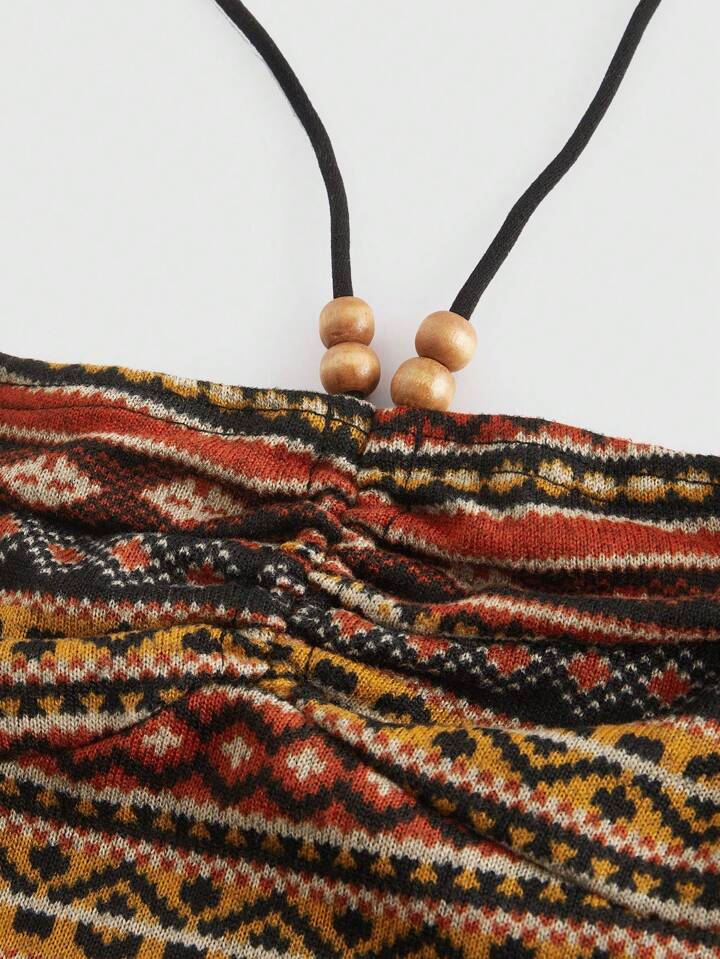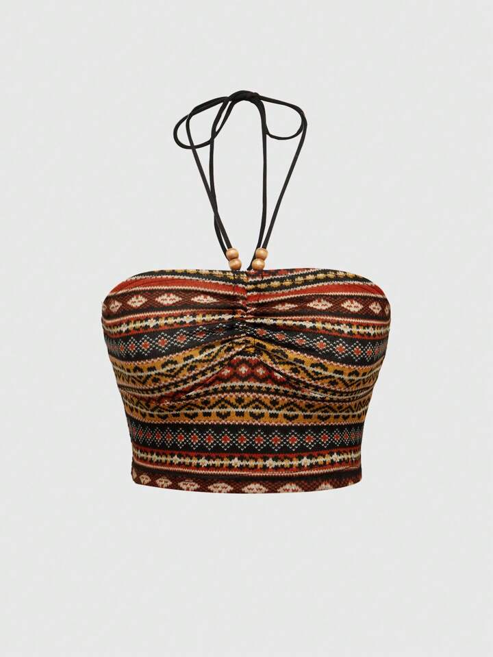 Top de tirantes halter de corte slim para mujer estilo hippie, bohemio y de verano