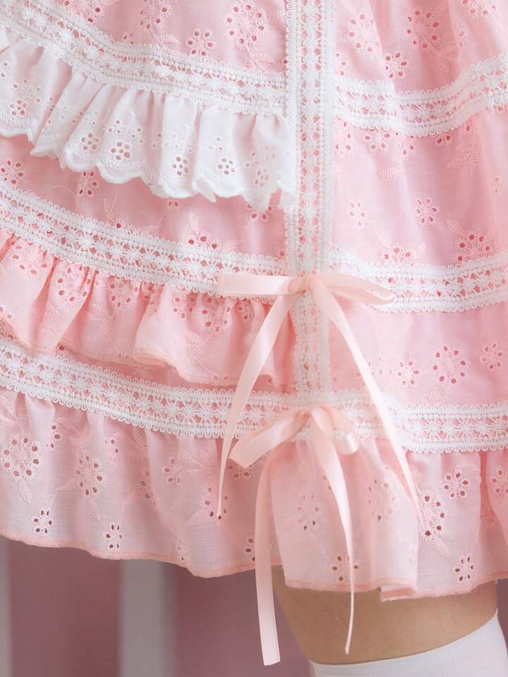 Falda mini de verano estilo Lolita Kawaii con bordados, parches y volantes en el bajo para mujeres