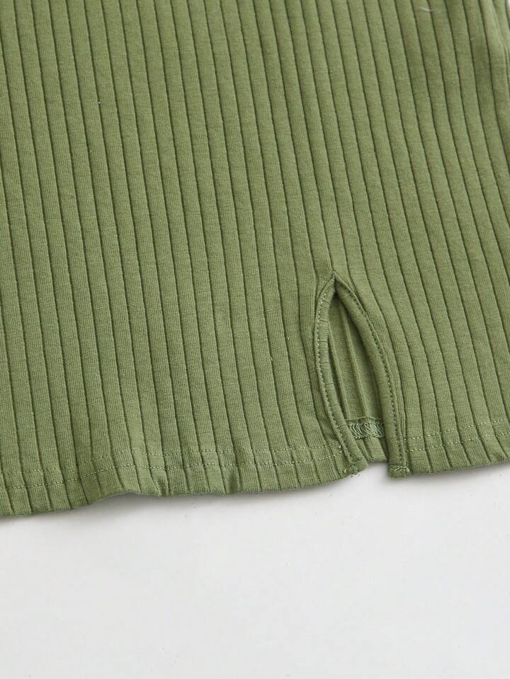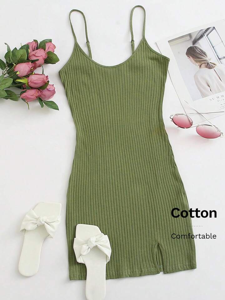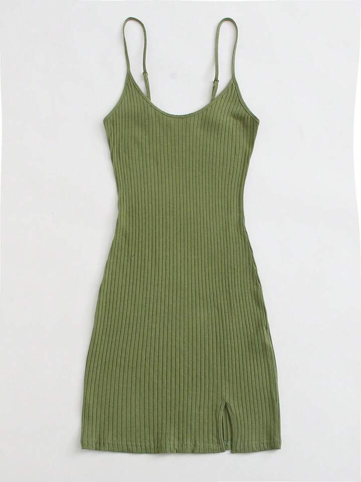 Vestido de punto acanalado de un solo color con dobladillo dividido para salidas de verano