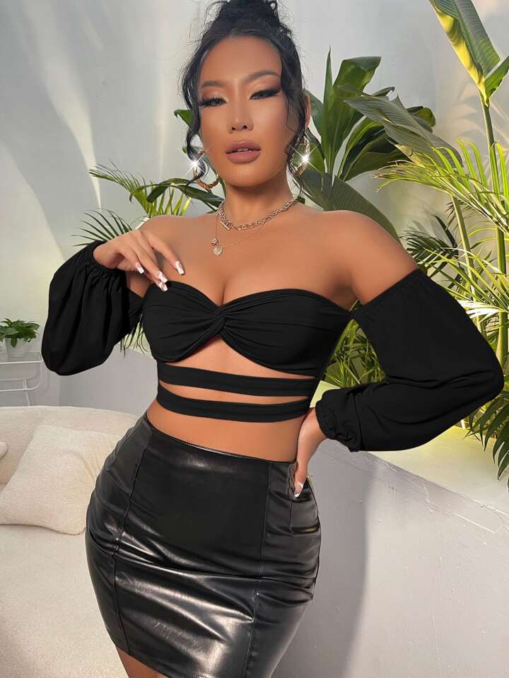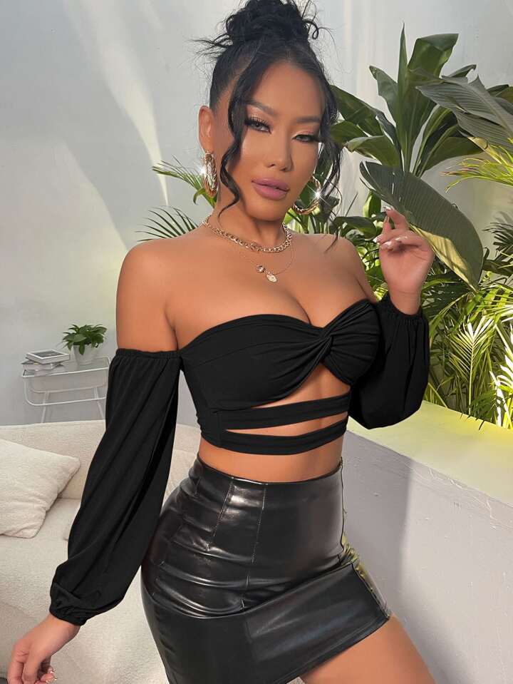Top Corto De Verano Sin Hombros Sexy Con Torcedura Y Corte Frontal