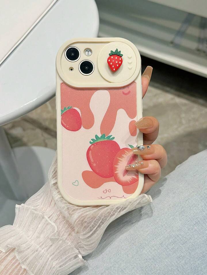 Carcasa De Celular De Verano Con Estampado De Fresas Y Cubierta Deslizante Para La Cámara