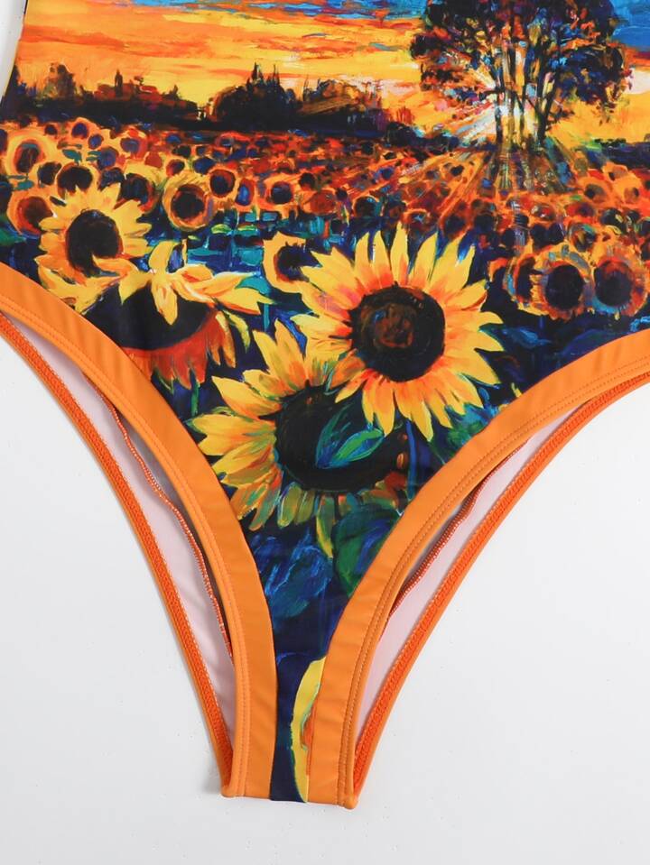 Bañador una pieza con estampado de girasol de hombros con cordón