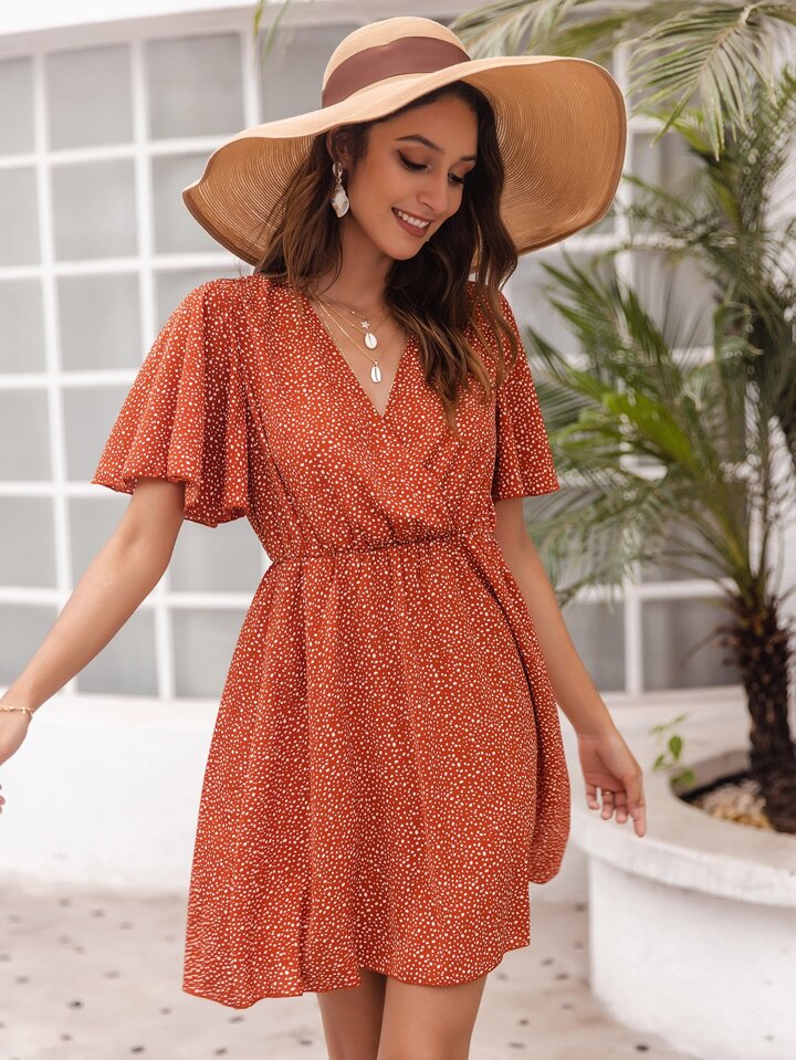 Vestido línea A con estampado de lunares de cuello cruzado