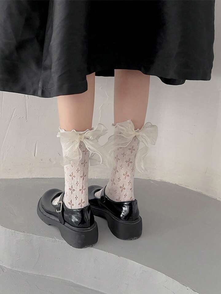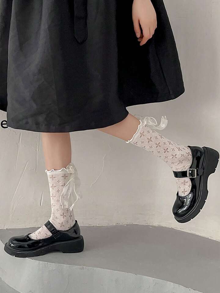Sweetness Mujer 1 par Calcetines de tripulación flor con abertura con diseño de lazo casual para vida diaria