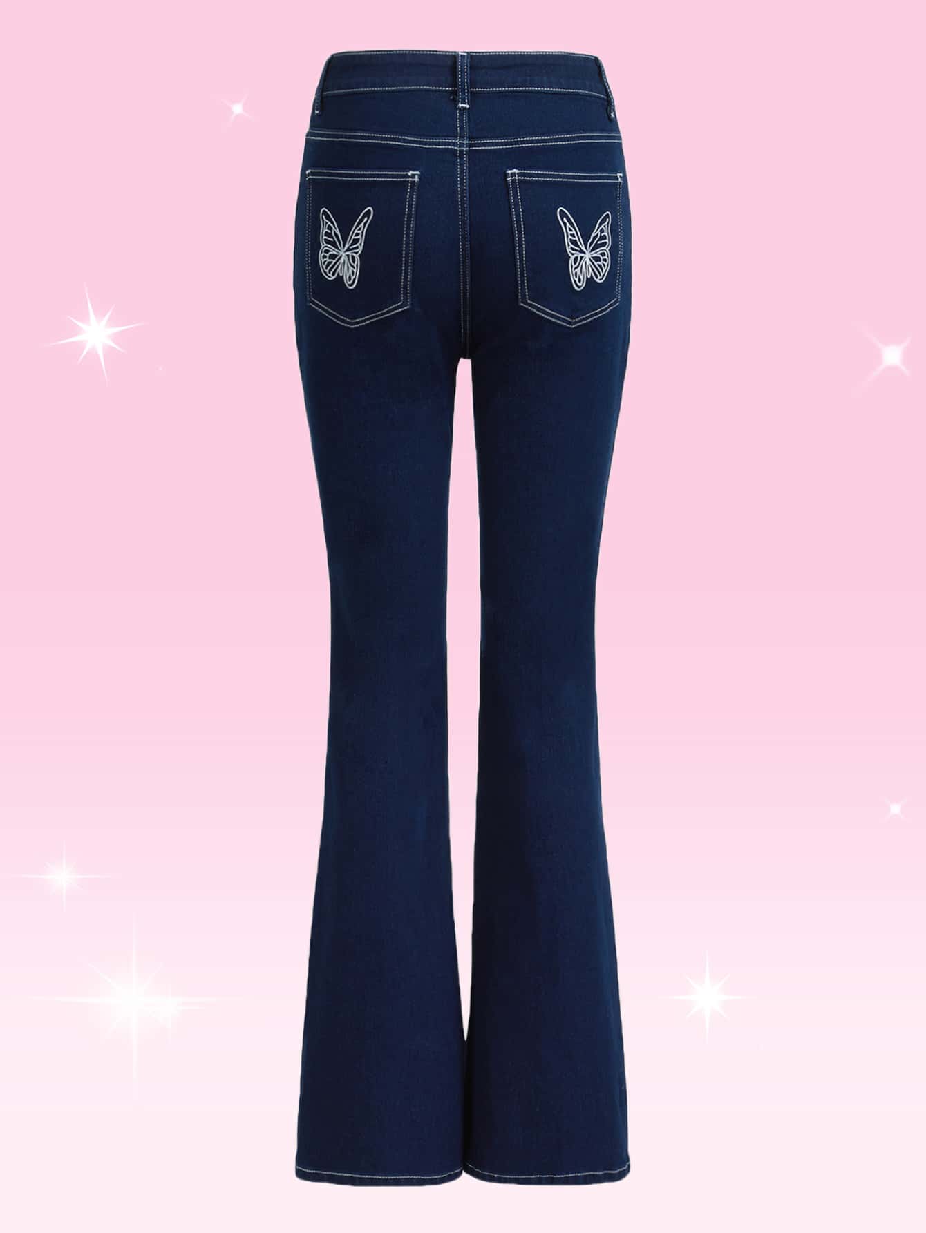 Sweetness Jeans de pierna amplia con bordado de mariposa