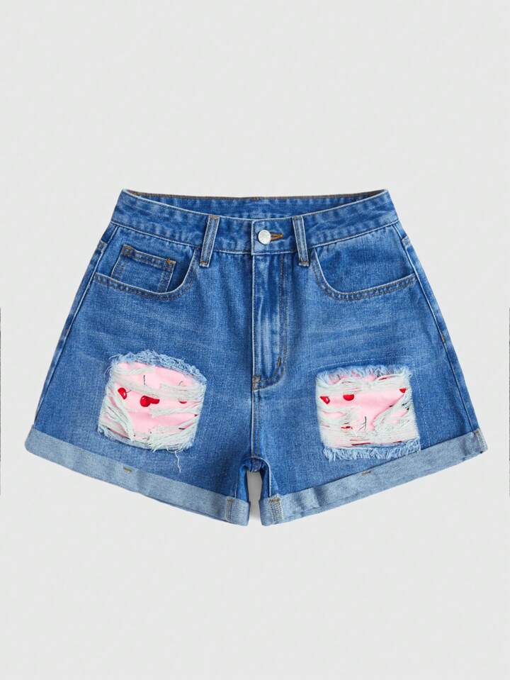 Sweetness Shorts vaqueros con borde enrollado y estampado de cerezas