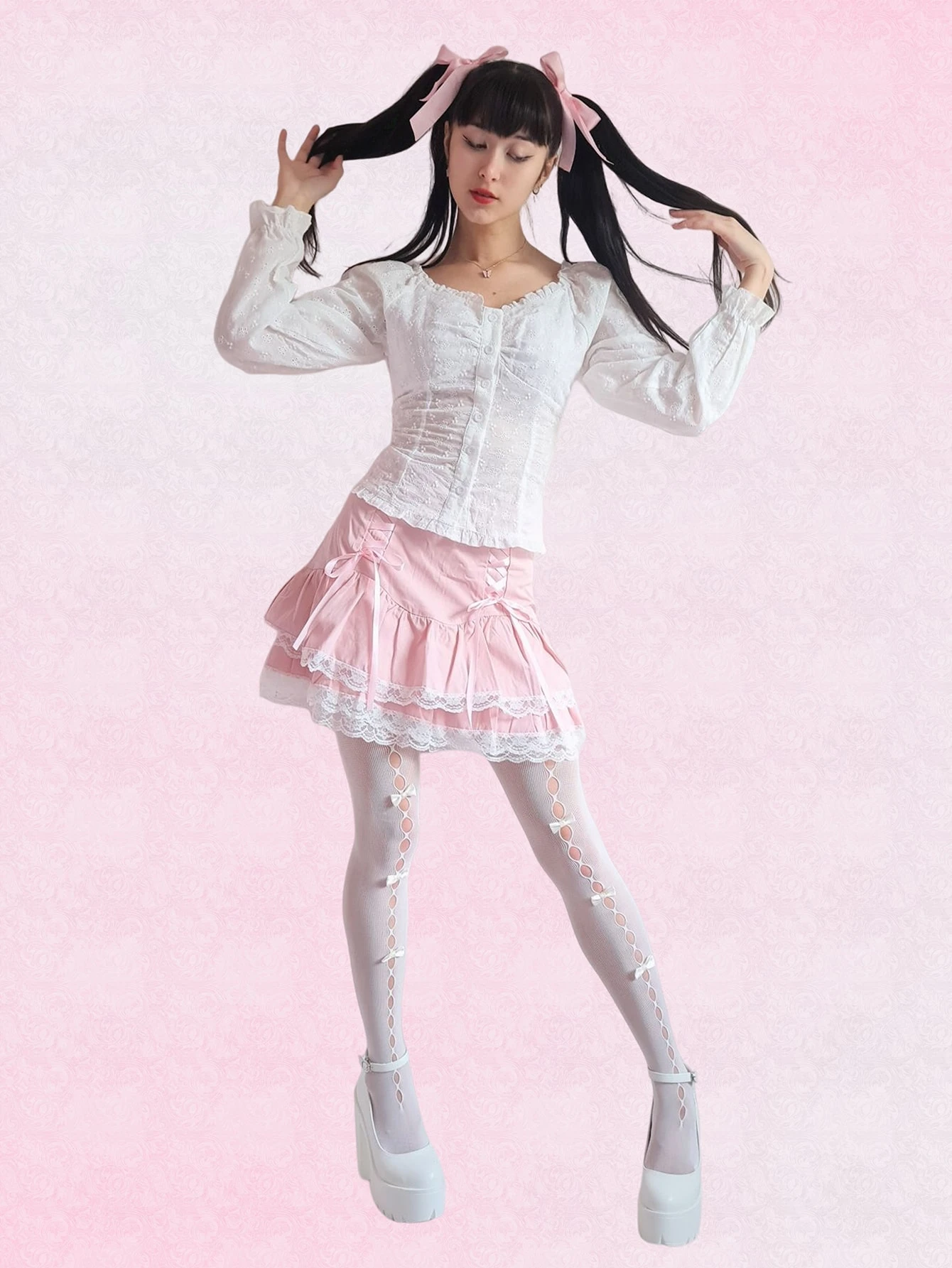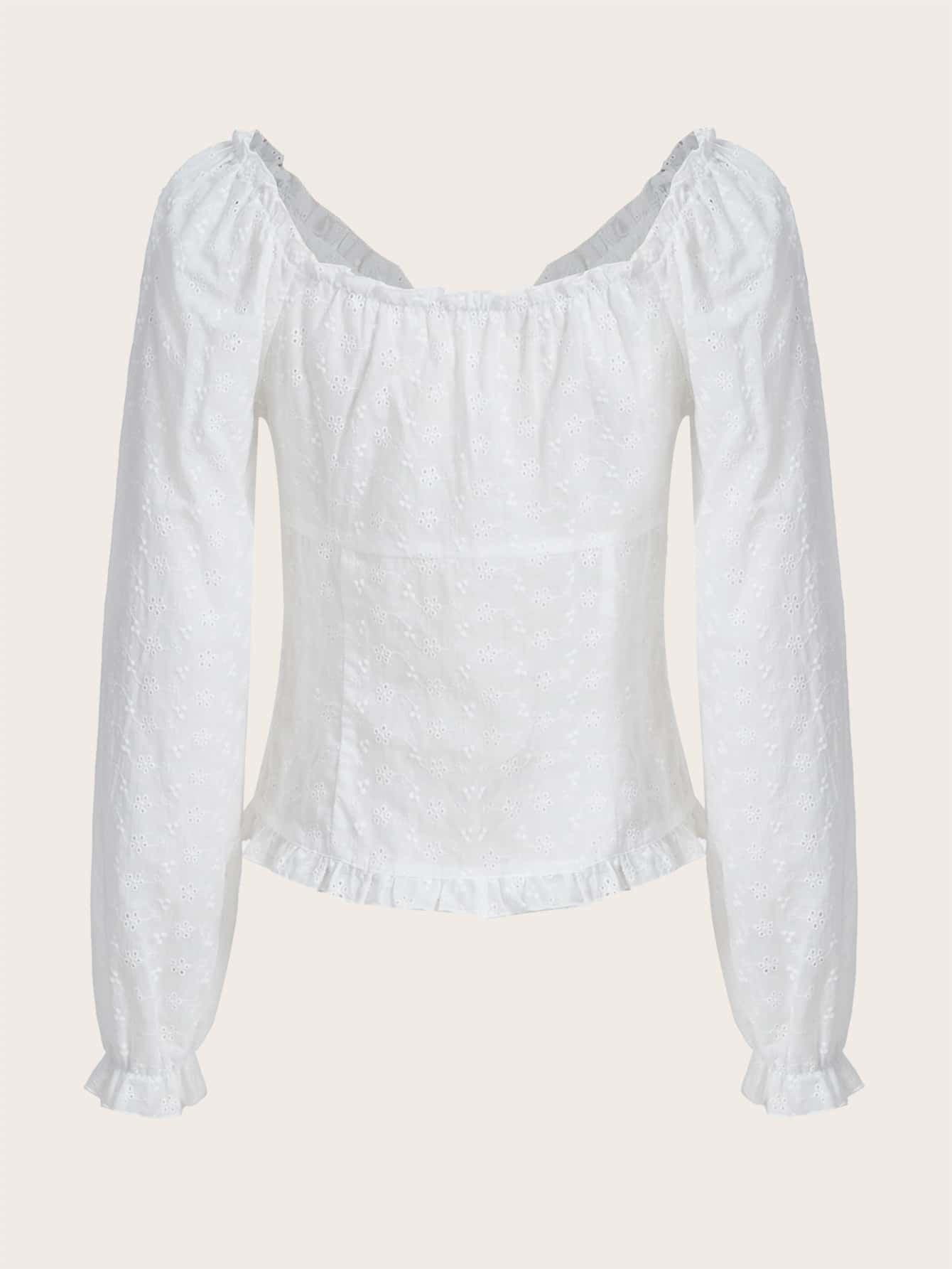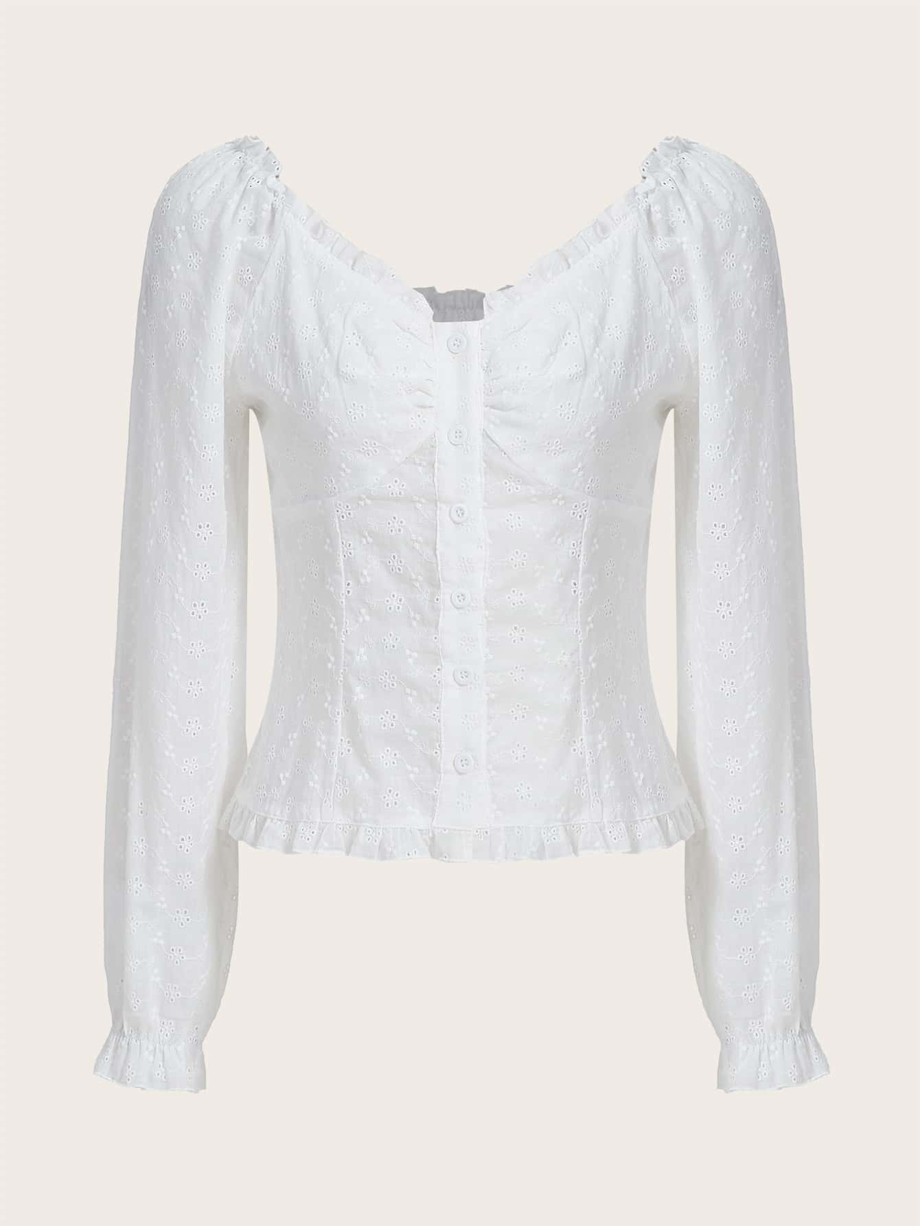 Sweetness Blusa con bordado con ojal ribete fruncido