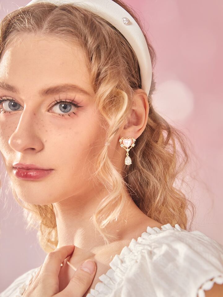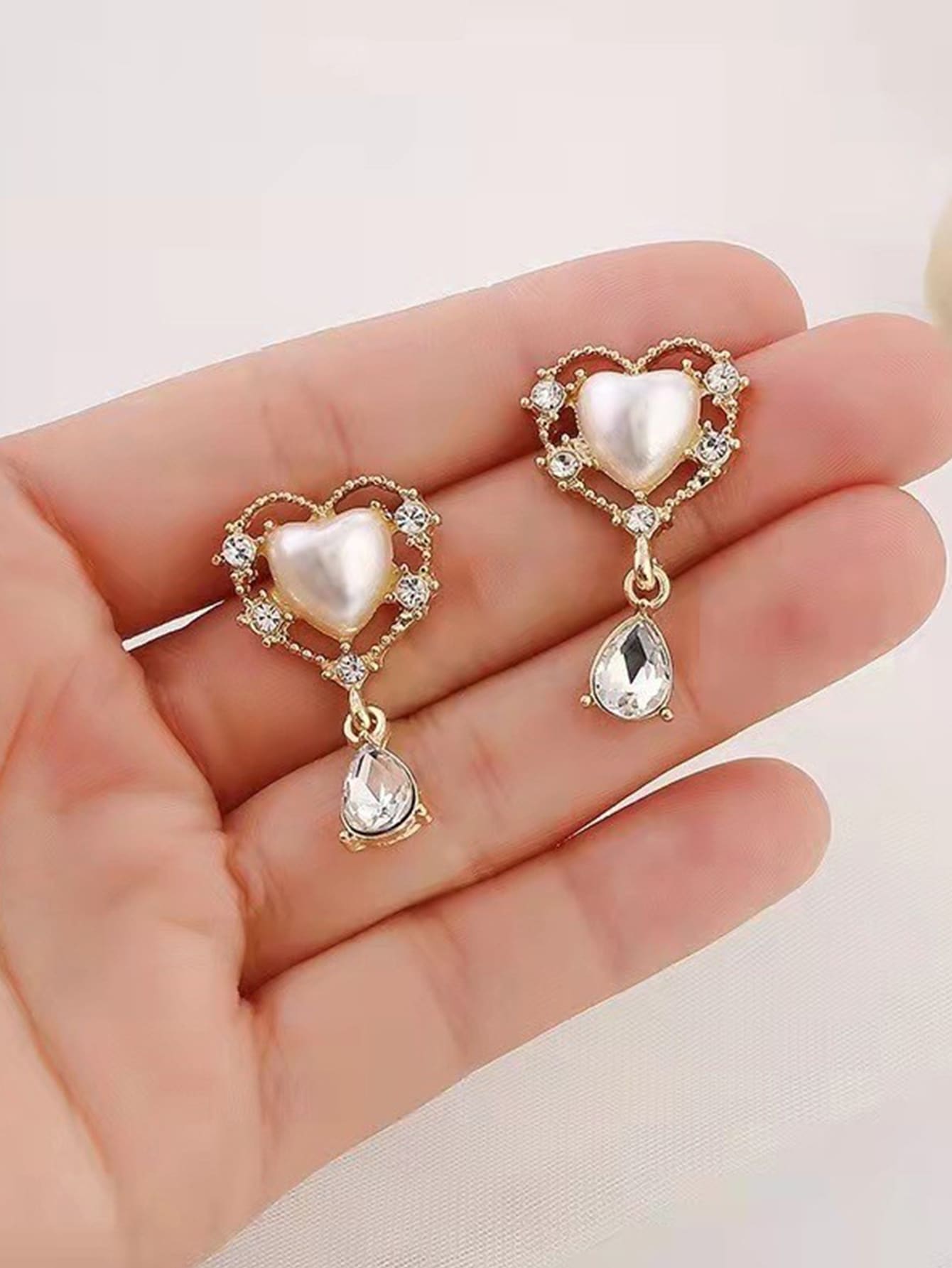 Sweetness Pendientes con gota de agua con perla artificial con adorno de corazón zirconia cúbica