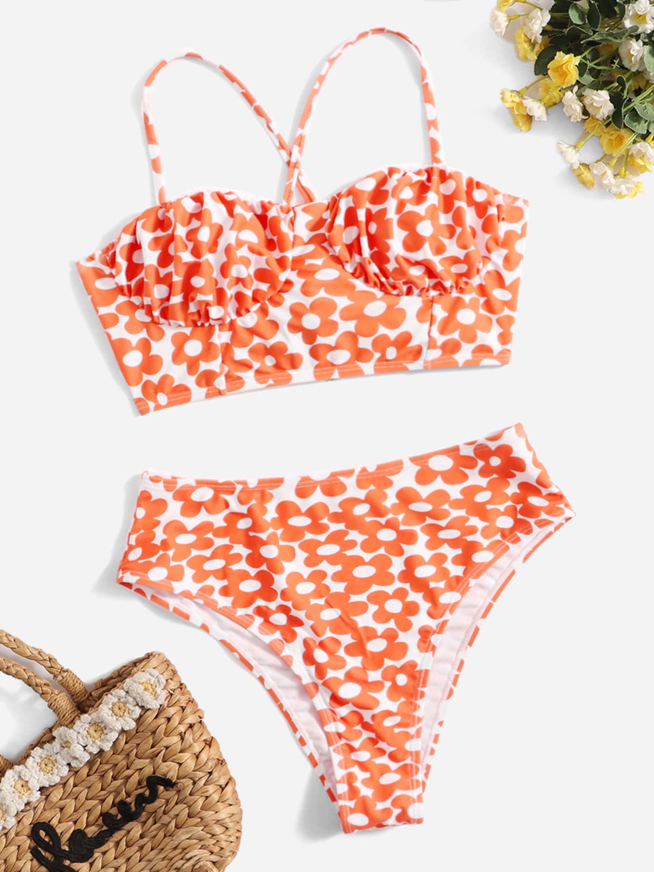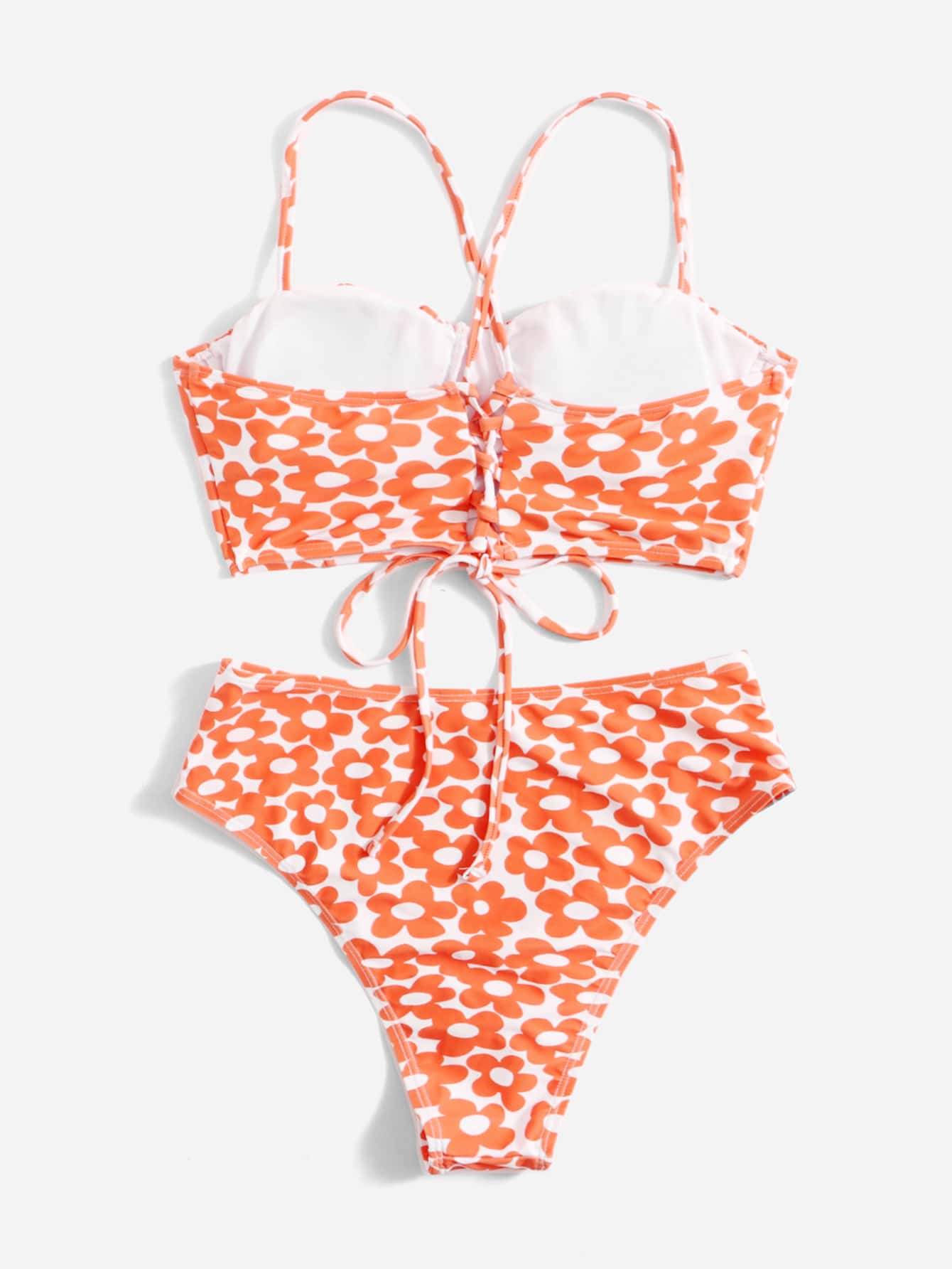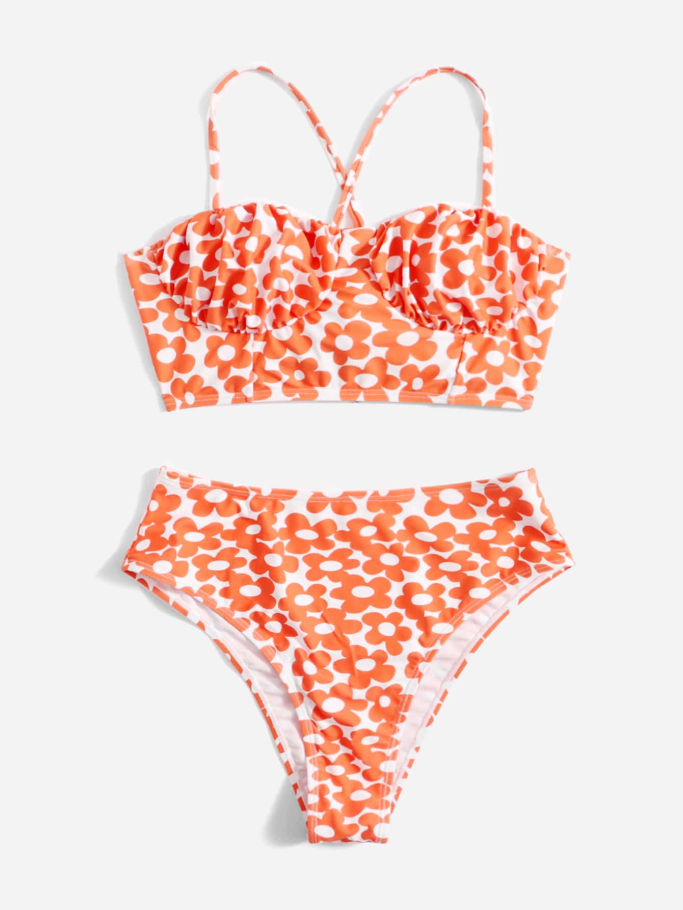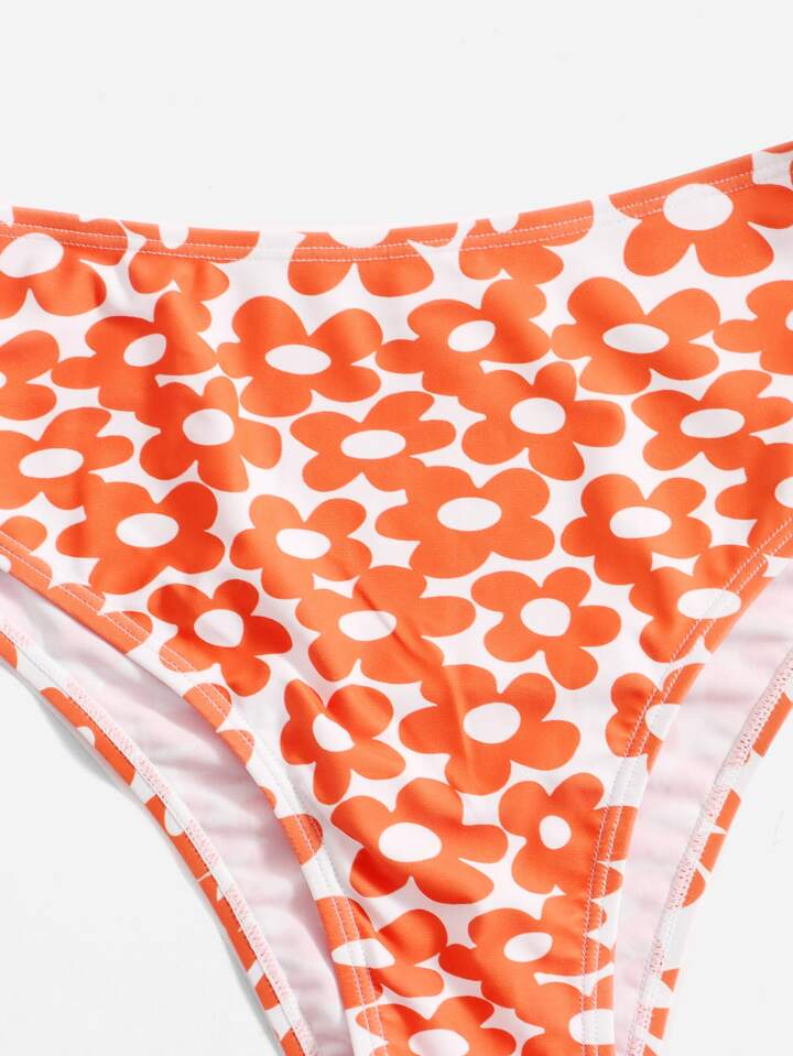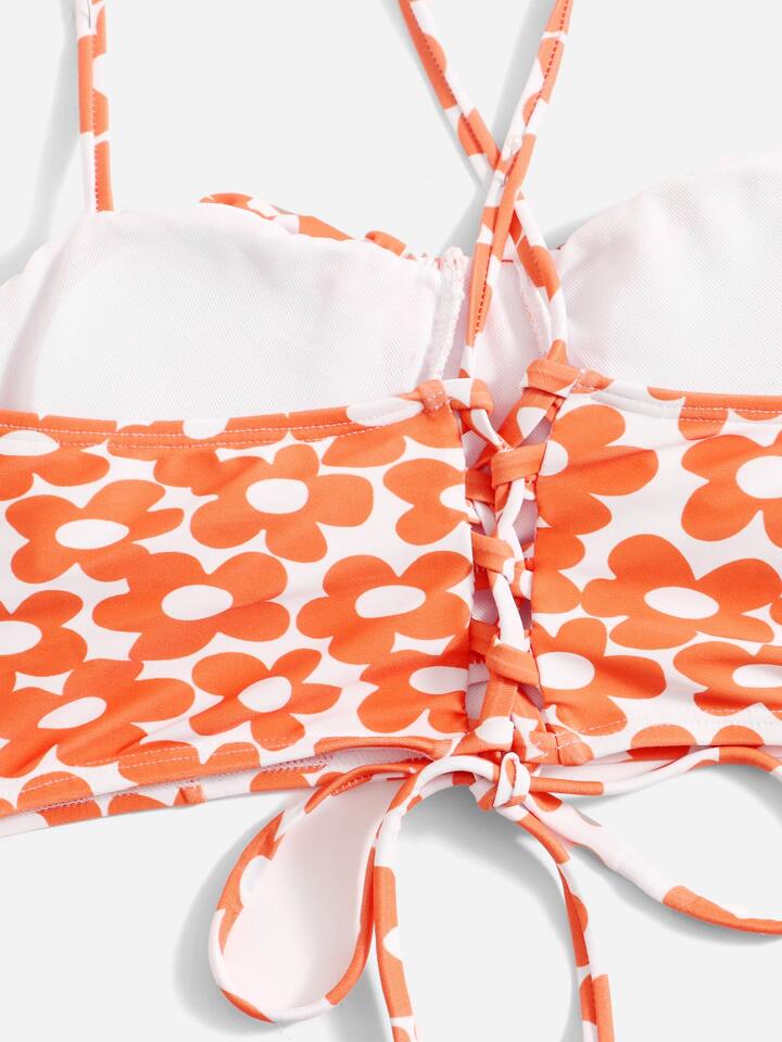 Sweetness Bikini con estampado floral, busto fruncido y lazo de encaje