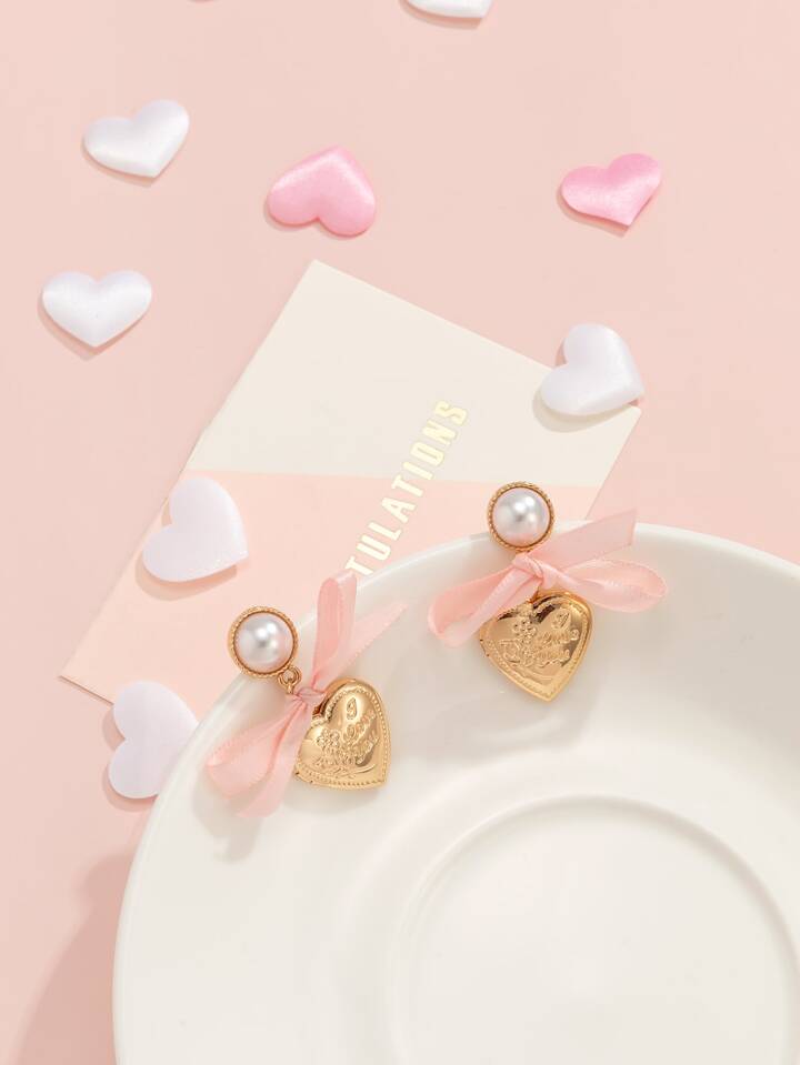 Sweetness Pendientes largos con diseño corazón & de lazo