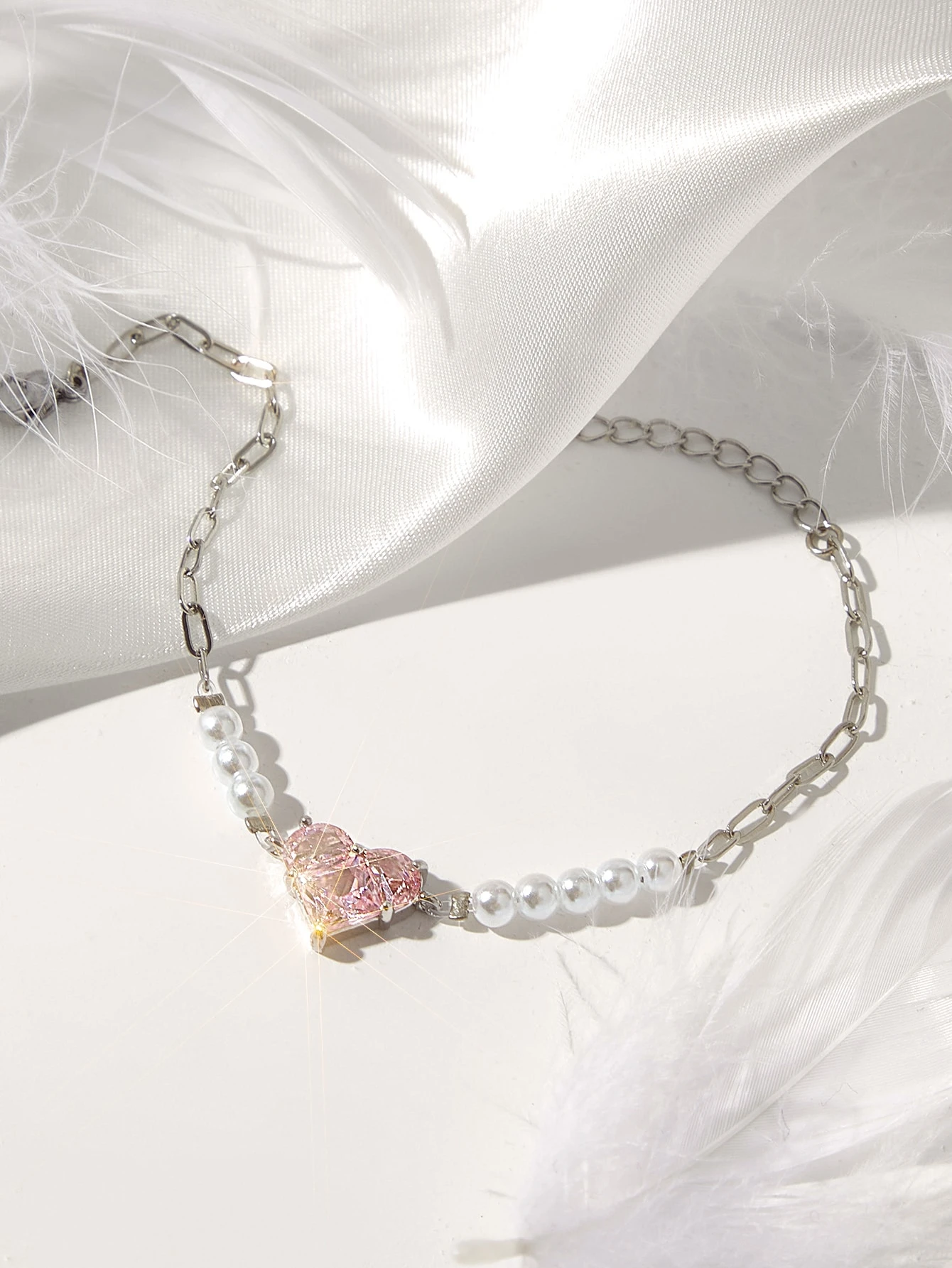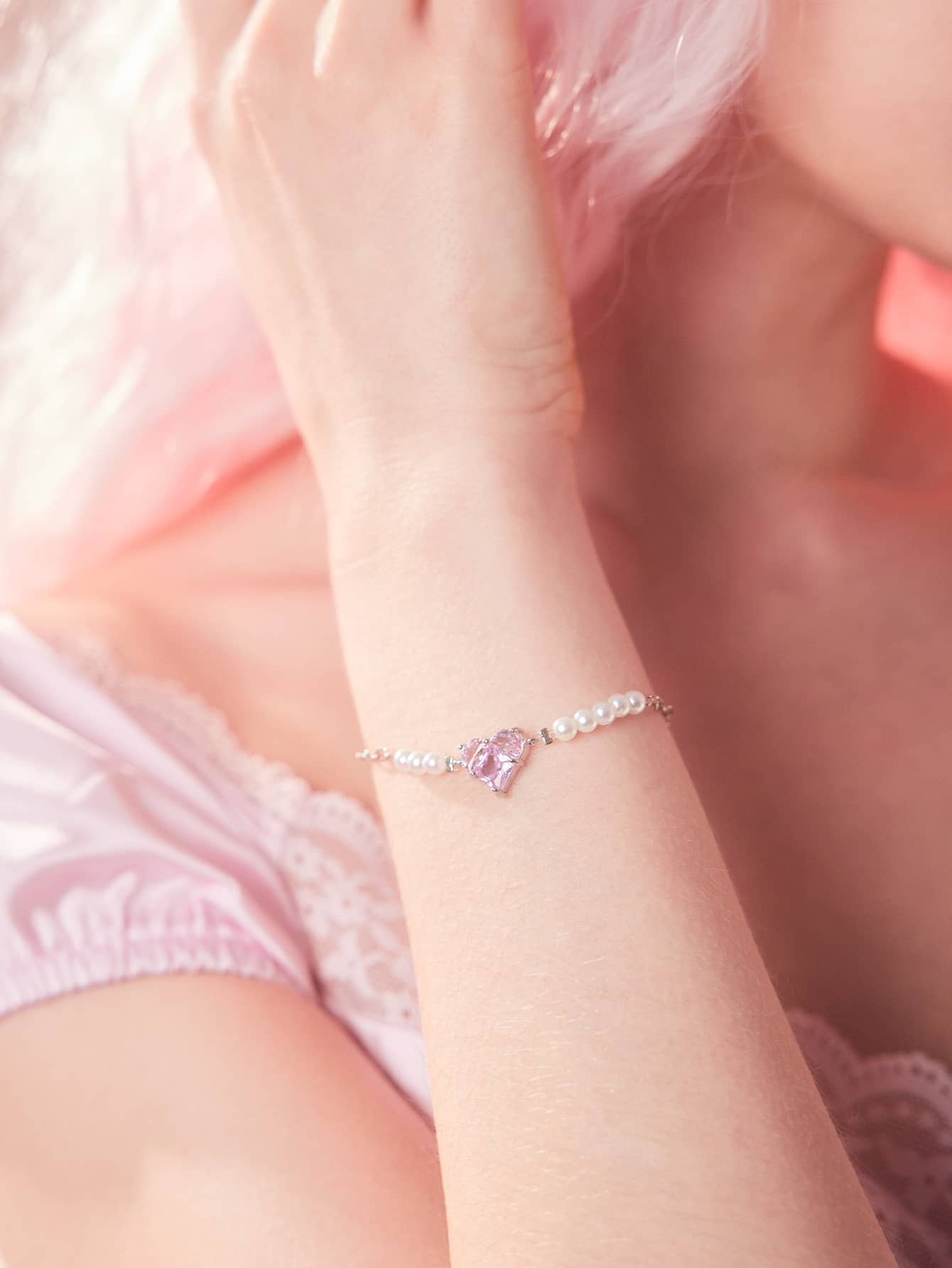 Sweetness Pulsera con diseño de corazón y perla artificial