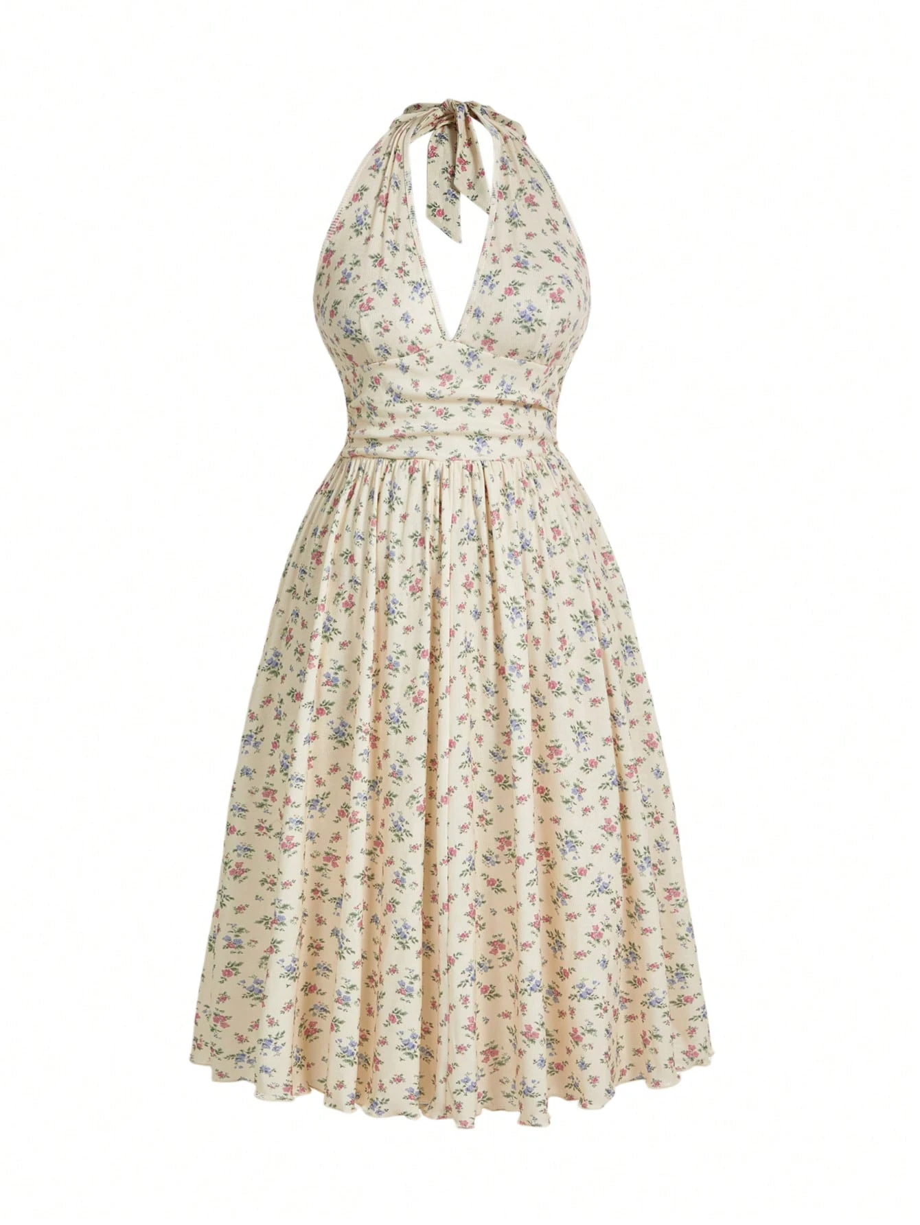 Sweetness Vestido maxi con cintura ceñida, cuello halter y tela de punto con estampado floral pequeño, talla grande, para primavera/verano