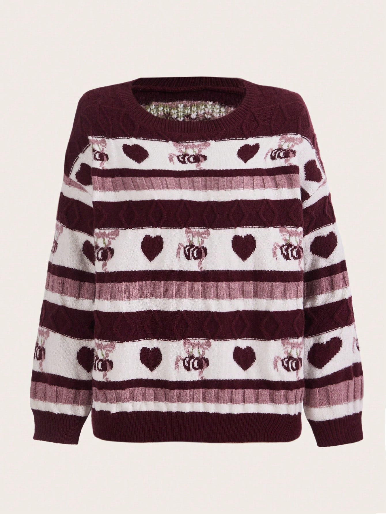 Sweetness Sweater De Parche De Corazón Con Patrón De Patchwork