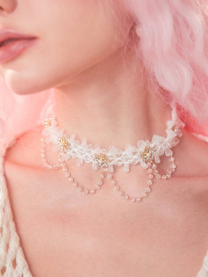 Sweetness Gargantilla con diseño de diamante de imitación y perla artificial