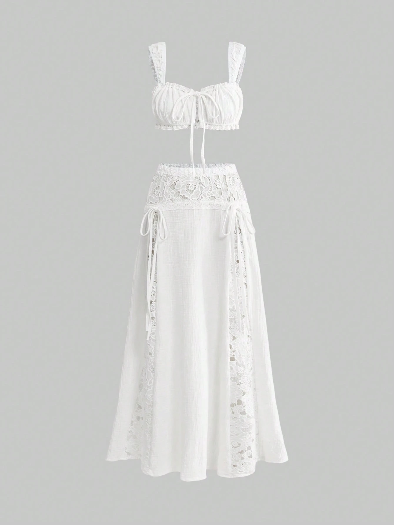 Sweetness Conjunto de 2 piezas de top corto calado y falda estilo vacaciones del sur de Italia para mujeres