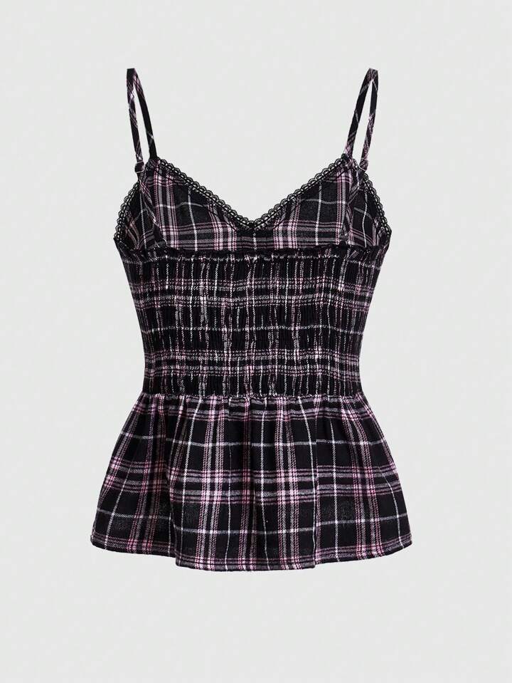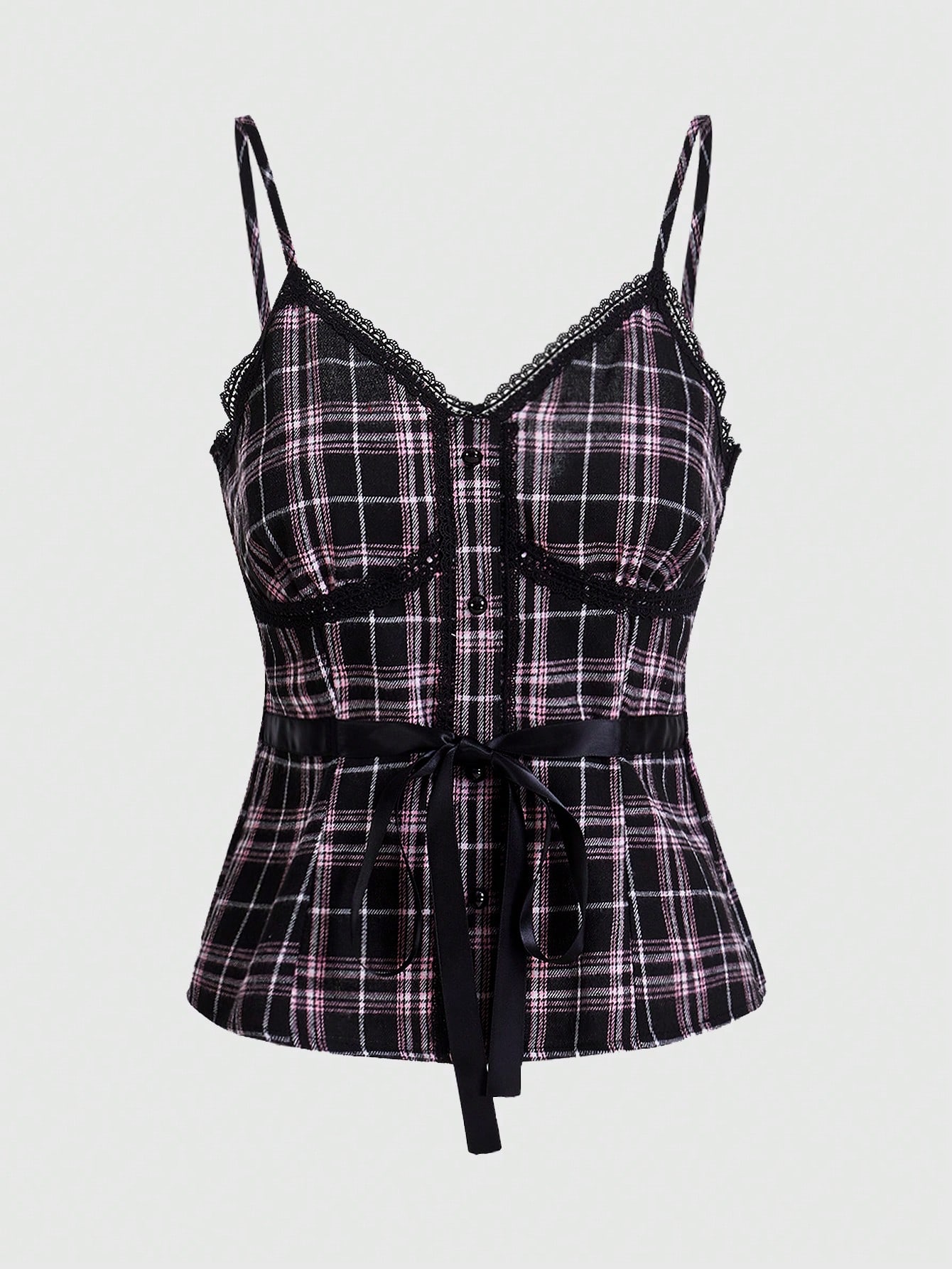 Sweetness Camiseta de tirantes con diseño arrugado y nudo en estampado de tartán