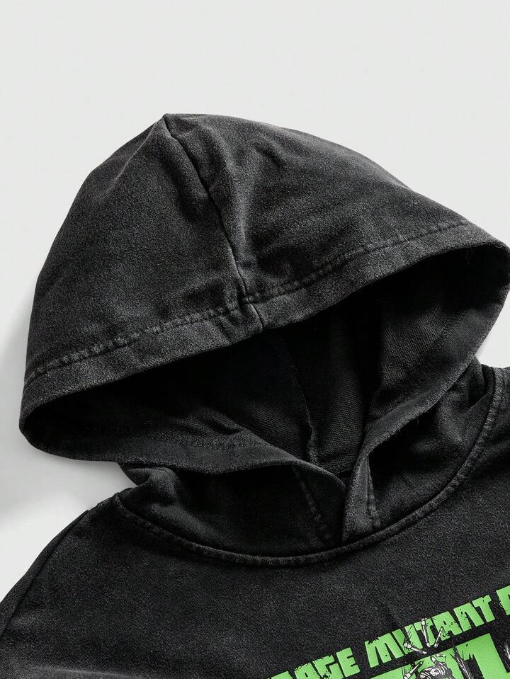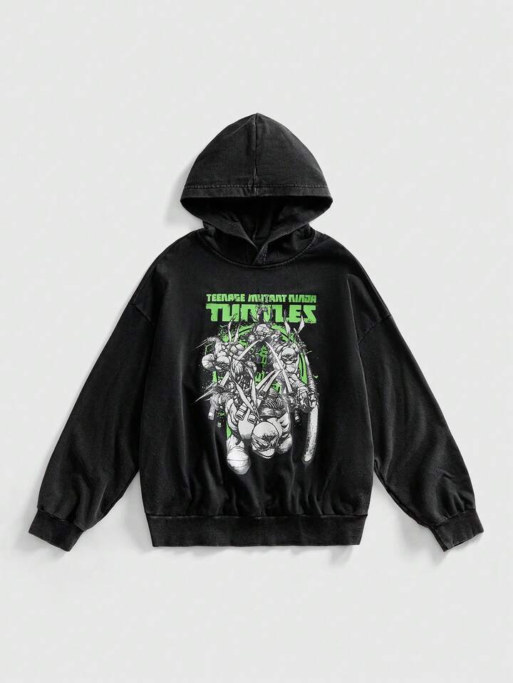 TEENAGE MUTANT NINJA TURTLES X ROMWE Sudadera con capucha casual de otoño para hombres con gráfico de tortuga y letra