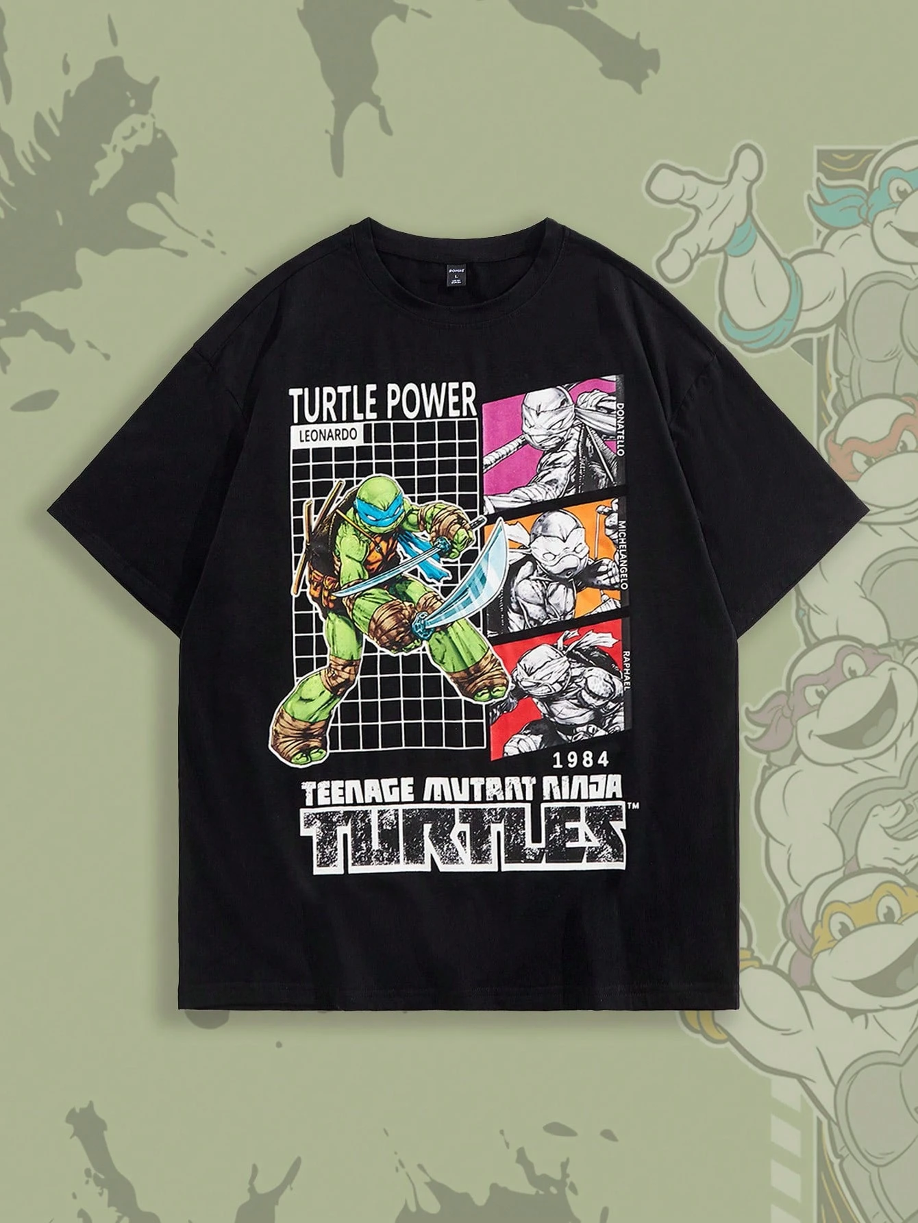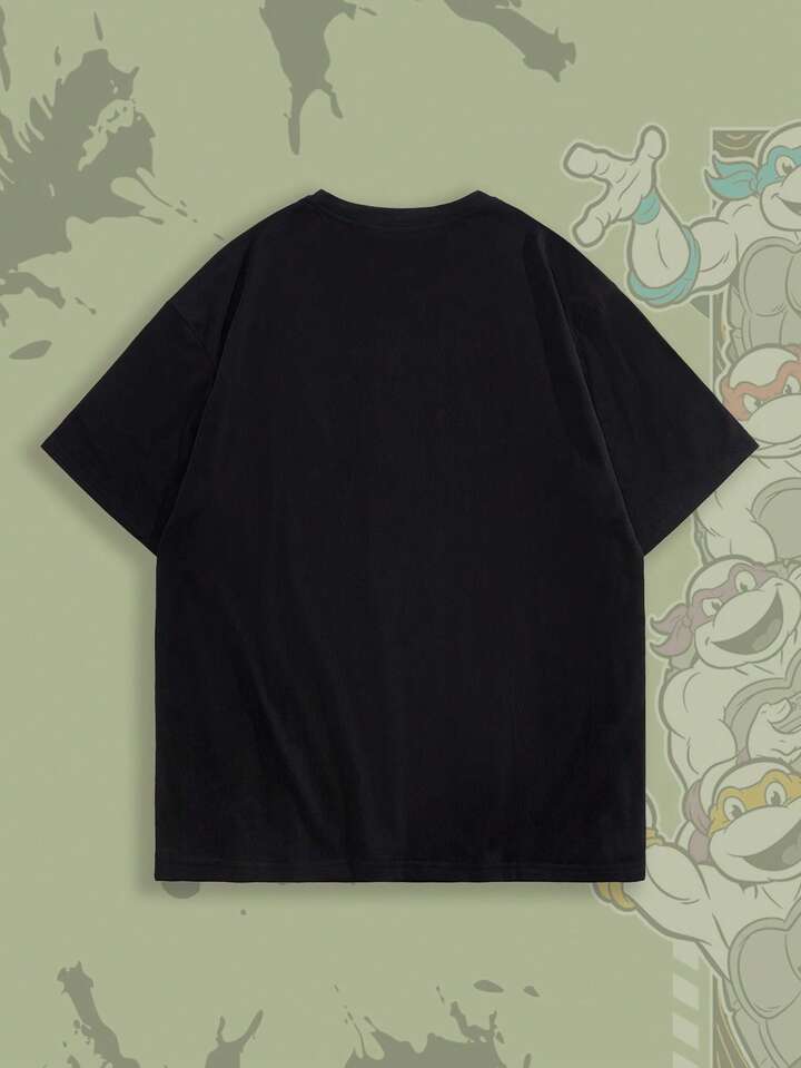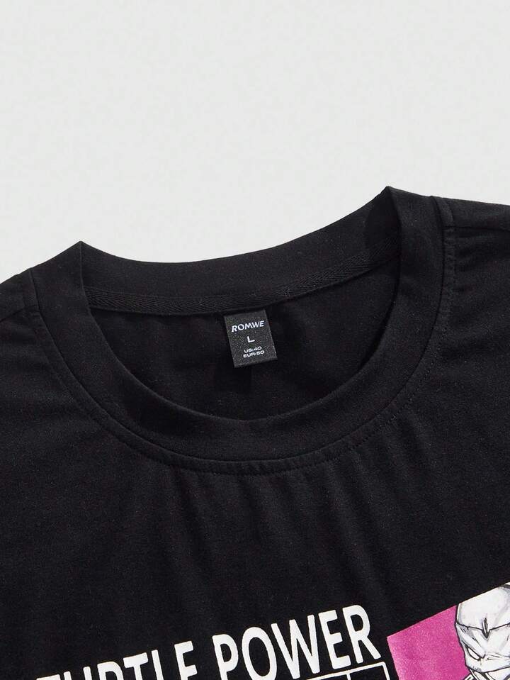 TEENAGE MUTANT NINJA TURTLES X ROMWE Camiseta de manga corta casual de hombre con estampado de letra y tortuga, para verano