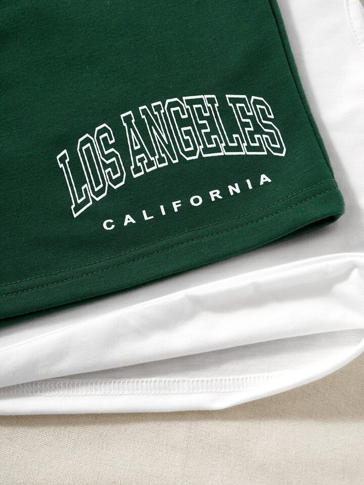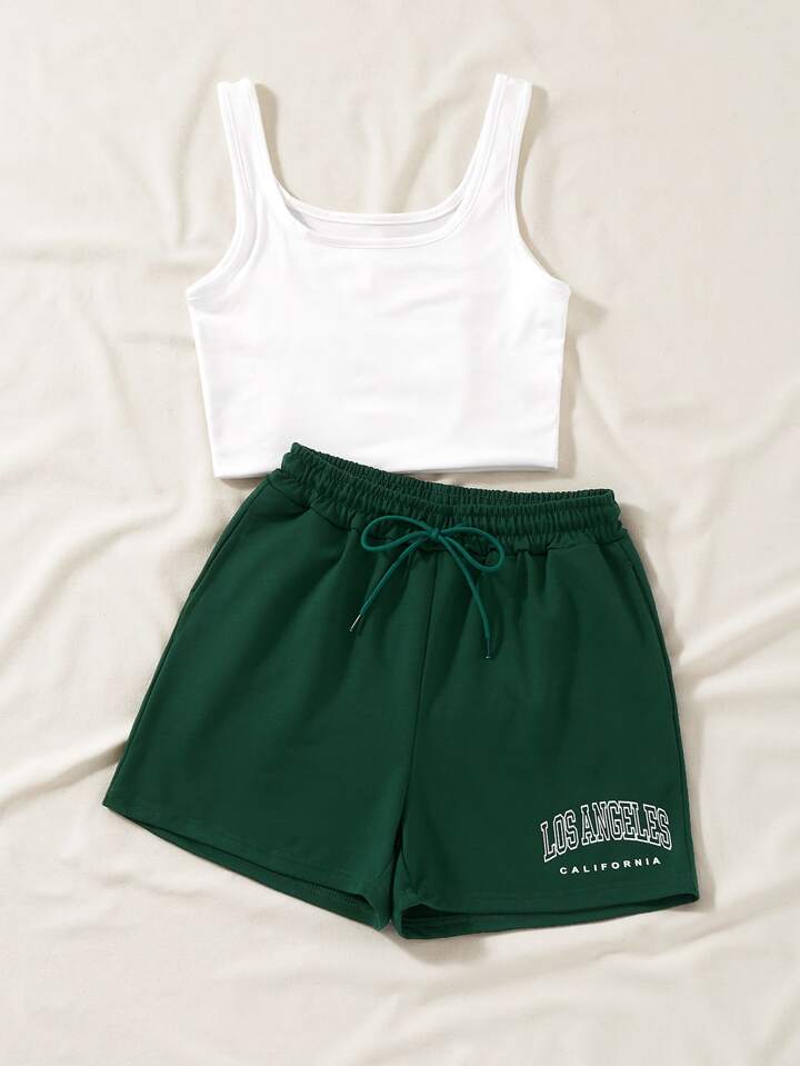 Top tank & con estampado de letra de cintura con cordón Shorts