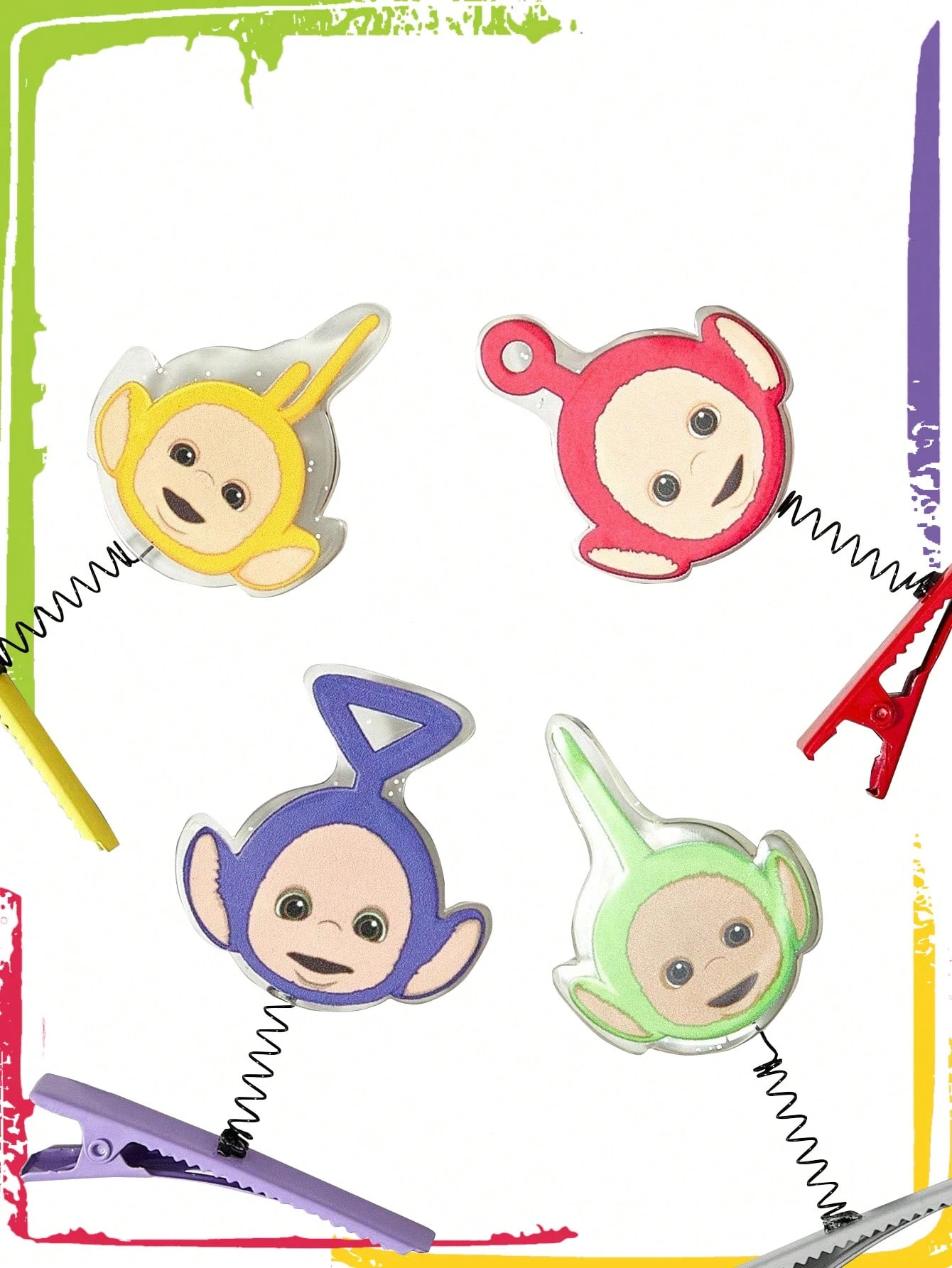 Teletubbies X ROMWE 4 piezas Clips para el cabello con personajes de dibujos animados, clips dulces y lindos para el flequillo y los lados, accesorios para el cabello de dibujos animados para niñas