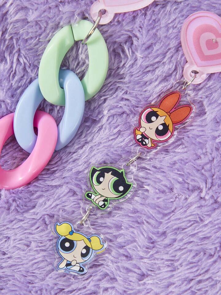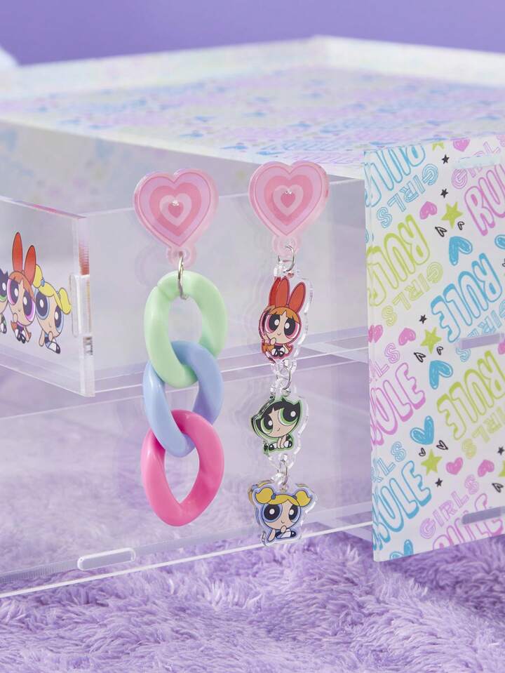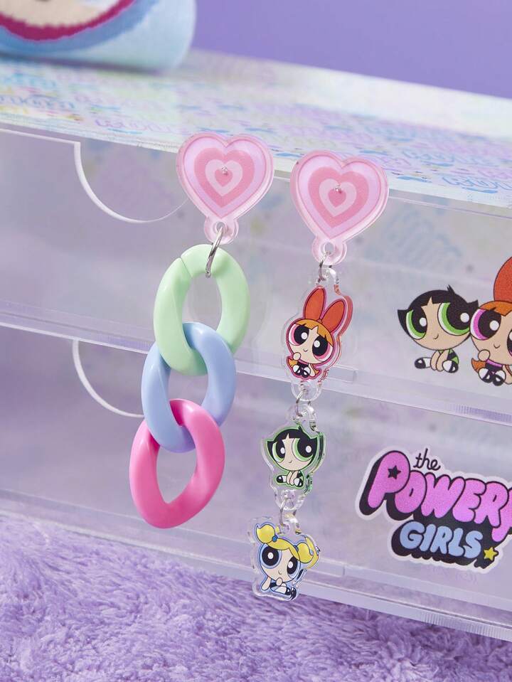 The Powerpuff Girls | ROMWE 1 par Pendientes largos dulce acrílico con corazón & con diseño de panda de dibujos animados de desemparejar para mujeres para decoración diaria