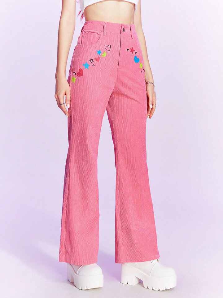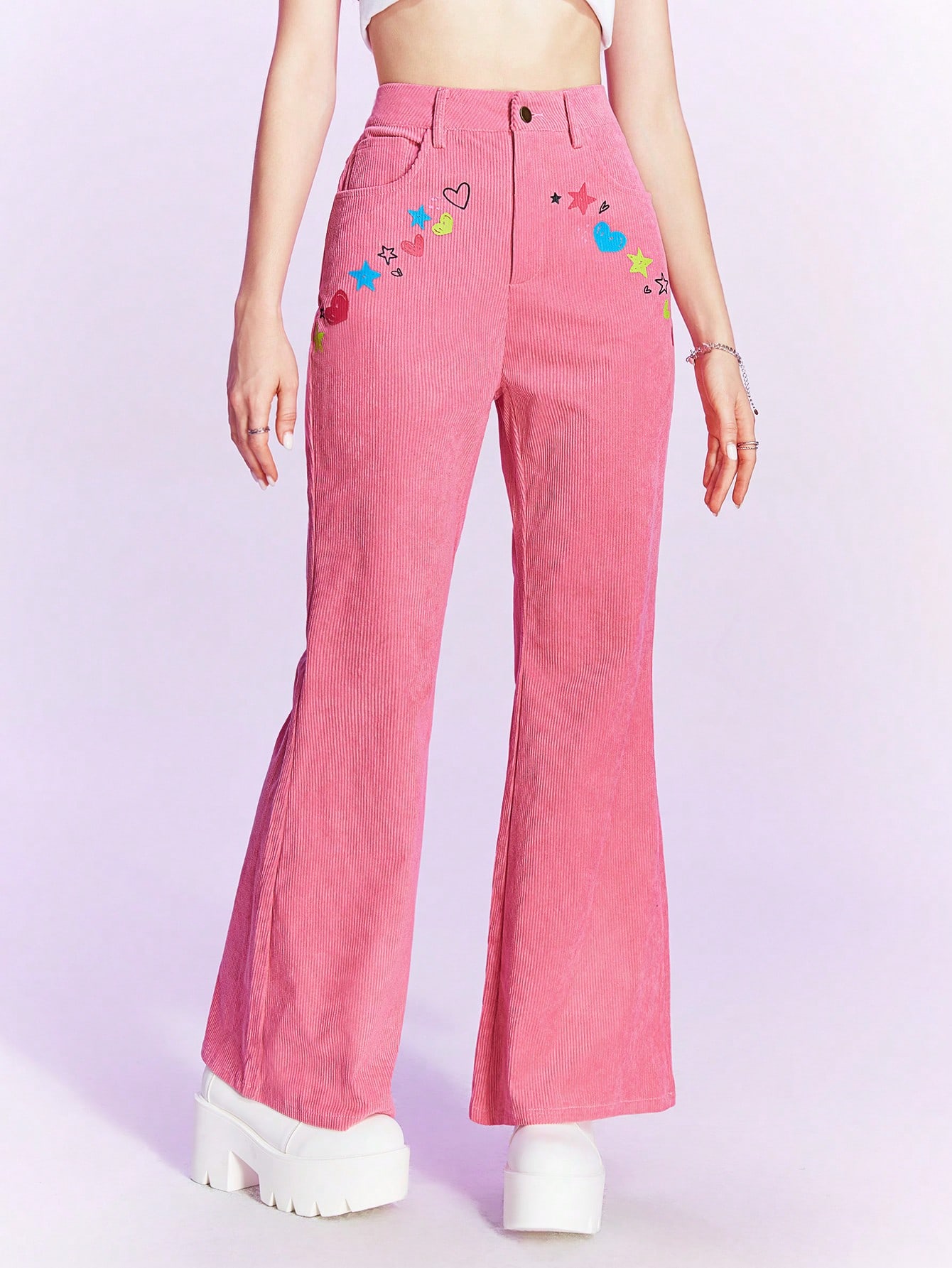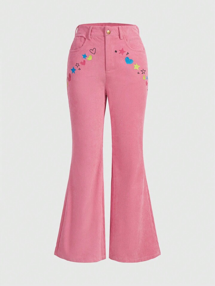 The Powerpuff Girls | ROMWE Pantalones con estampado de dibujos animados pierna amplia de pana