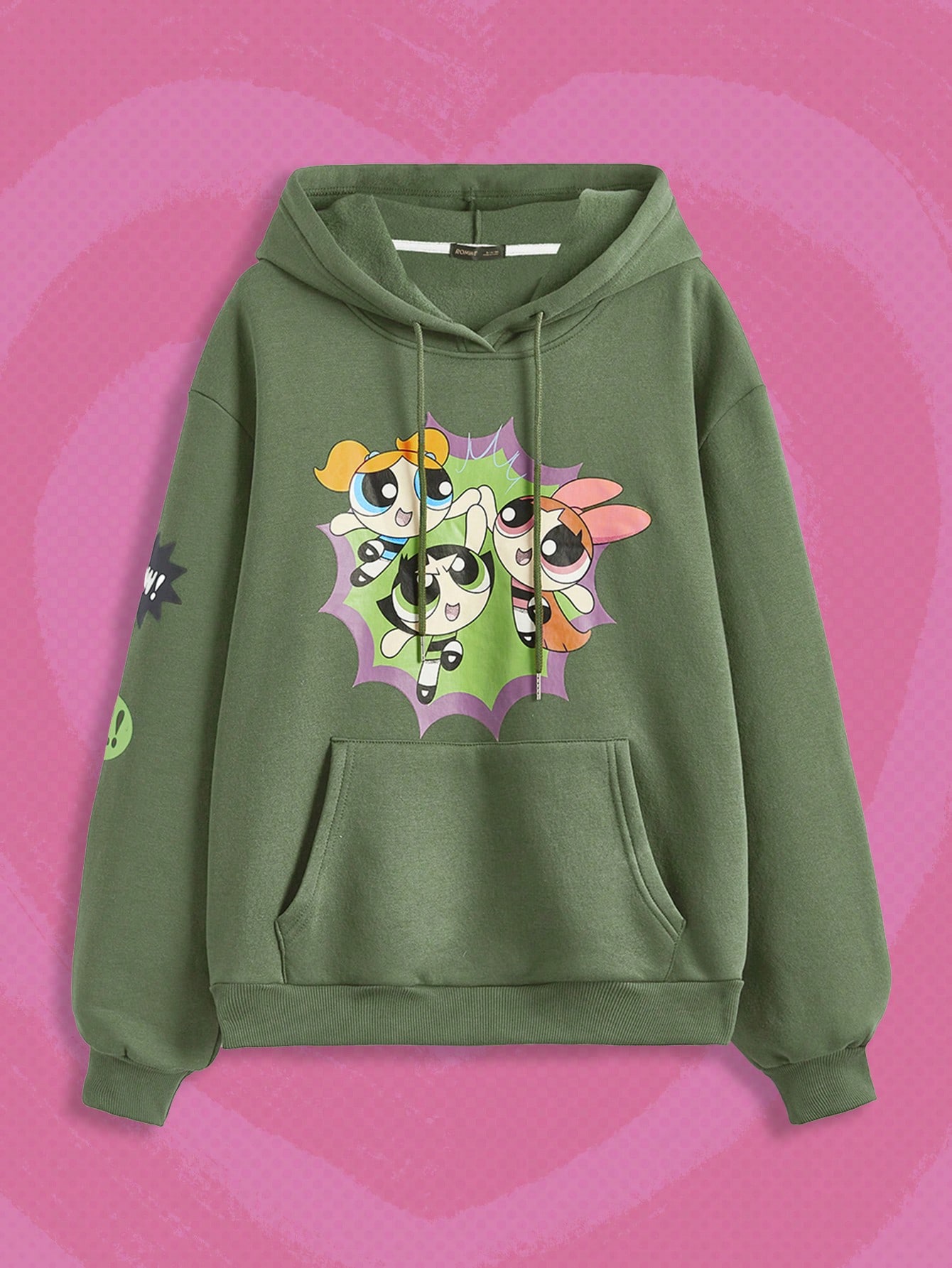 The Powerpuff Girls | ROMWE Sudadera Con Capucha Con Dibujo Animado, Cordón Y Bolsillo De Canguro