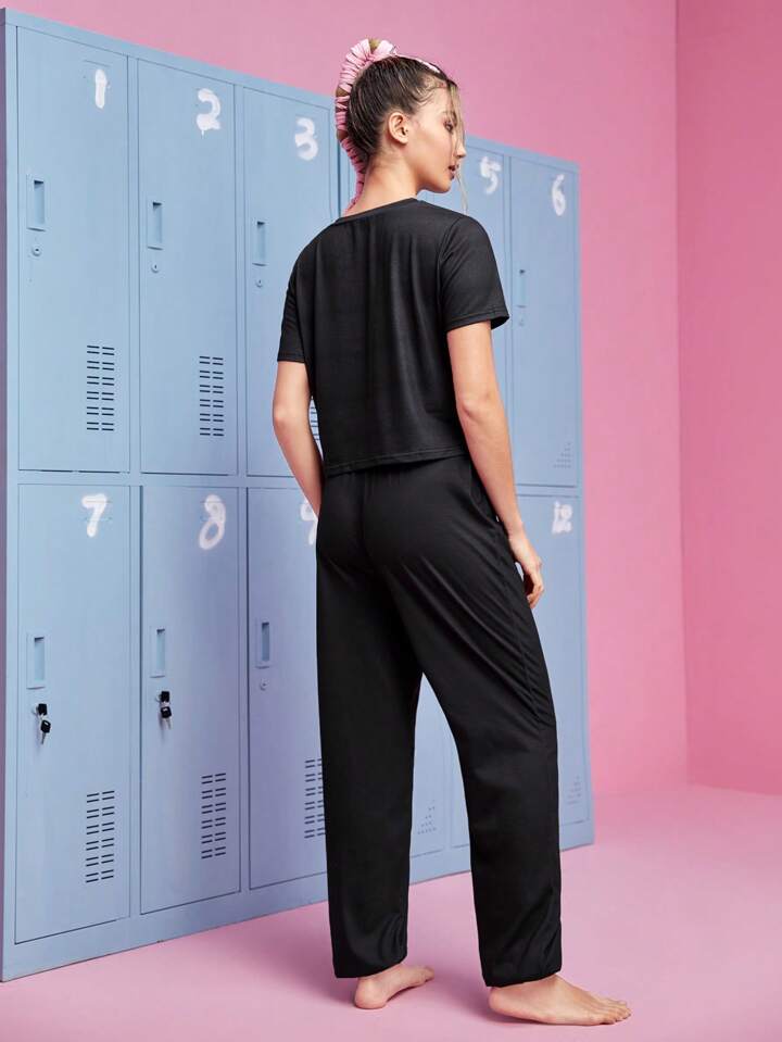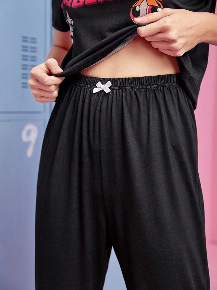 The Powerpuff Girls | ROMWE Conjunto homewear pantalones con camiseta con estampado de letra