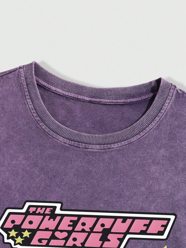 The Powerpuff Girls | ROMWE Camiseta oversize con impresión de dibujos animados y letras, adecuada para uso diario en primavera y verano, escuela