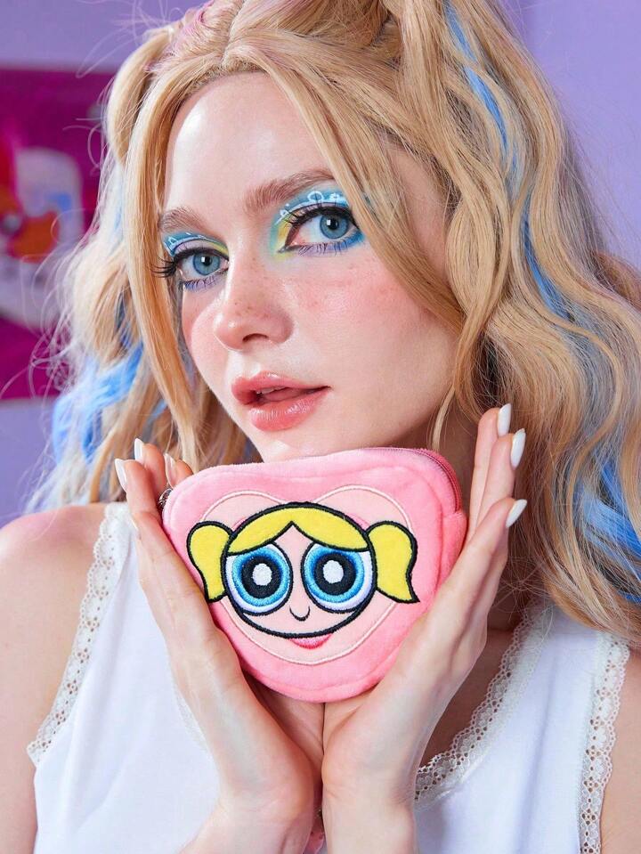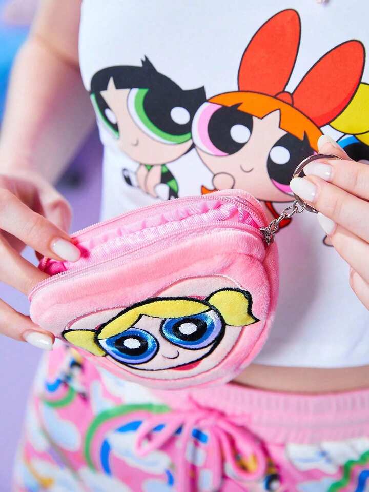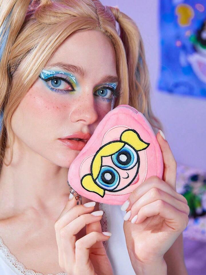The Powerpuff Girls | ROMWE Monedero bordado con corazón rosa y burbujas