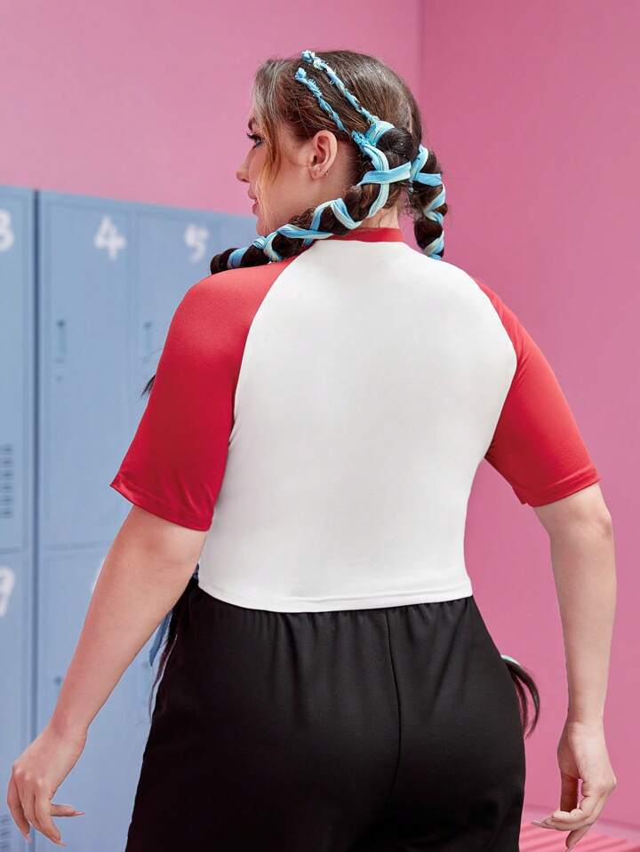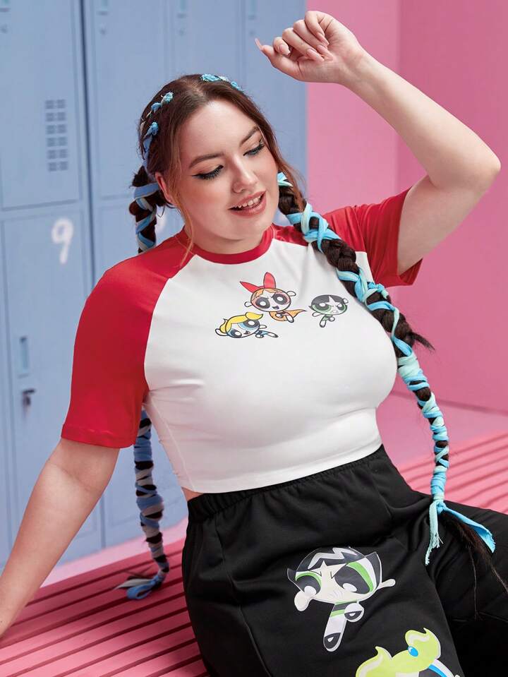 The Powerpuff Girls | ROMWE Camiseta crop con estampado de dibujos animados de manga raglán