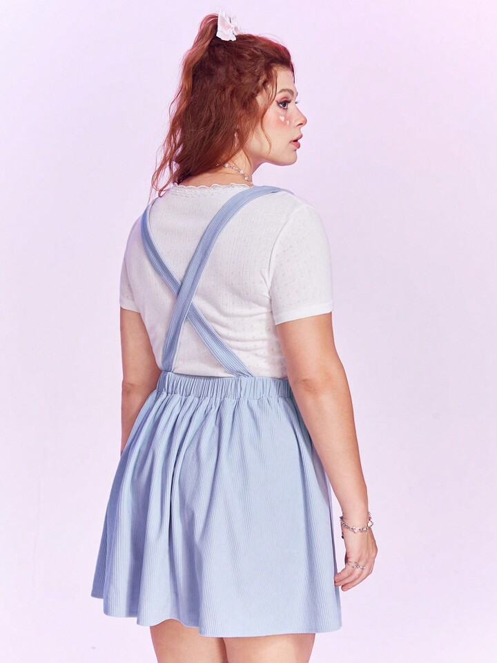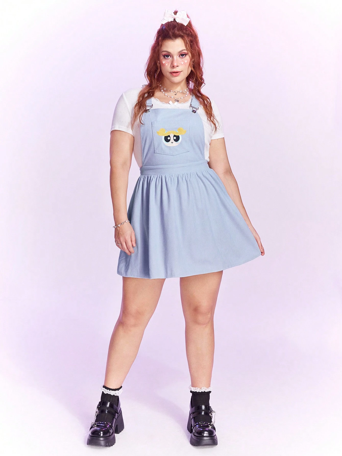 The Powerpuff Girls | ROMWE Talla grande Vestido overol con bordado con patrón de dibujos animados de pana sin camiseta