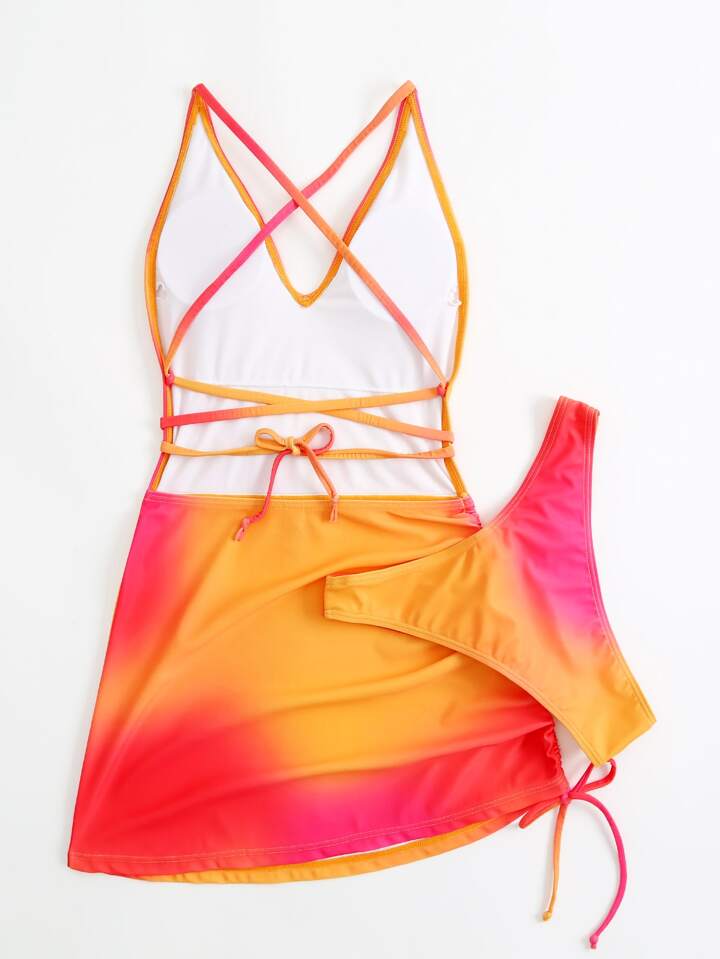 Vestido de baño con espalda al aire y Bottom de bikini con efecto tie-dye, para vacaciones de verano en la playa