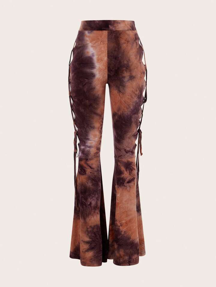 Pantalones acampanados de tie dye con abertura lateral sin cinturón