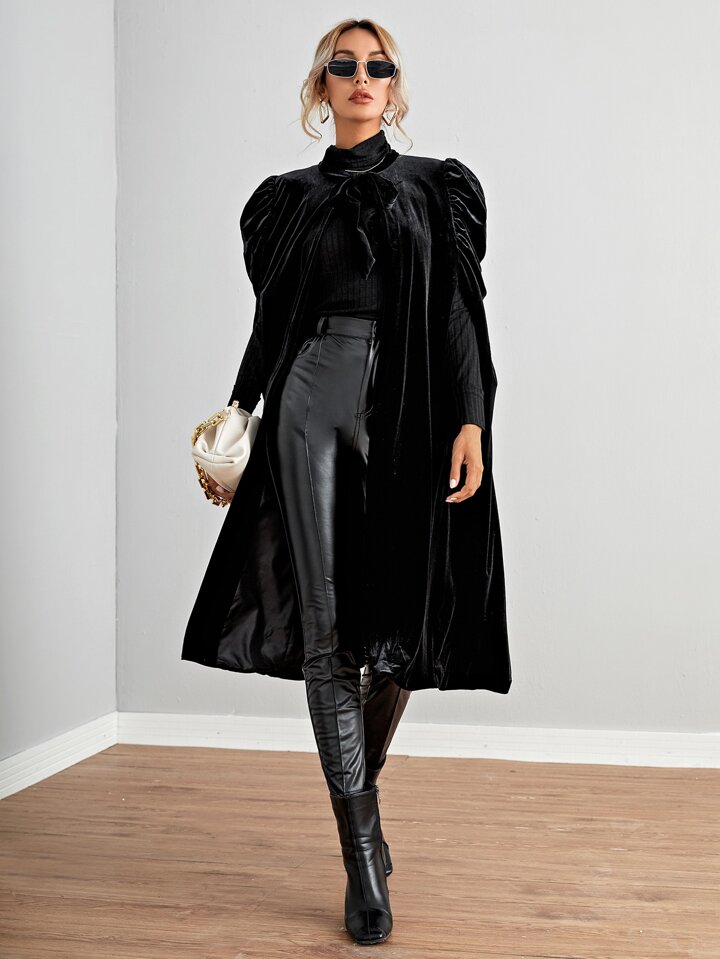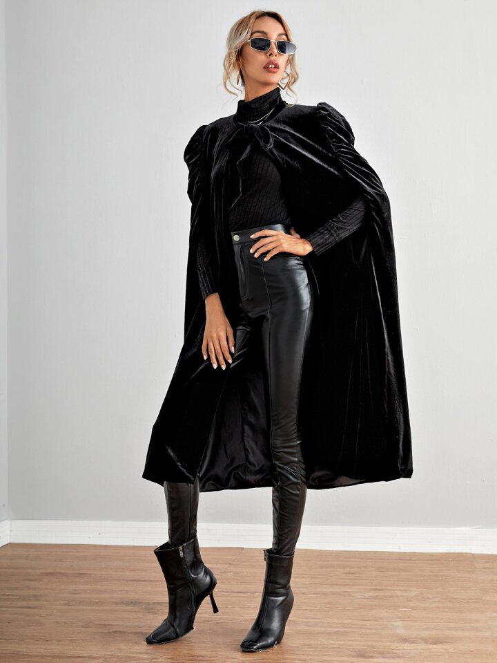 Chaqueta capa de terciopelo de manga farol con cordón delantero
