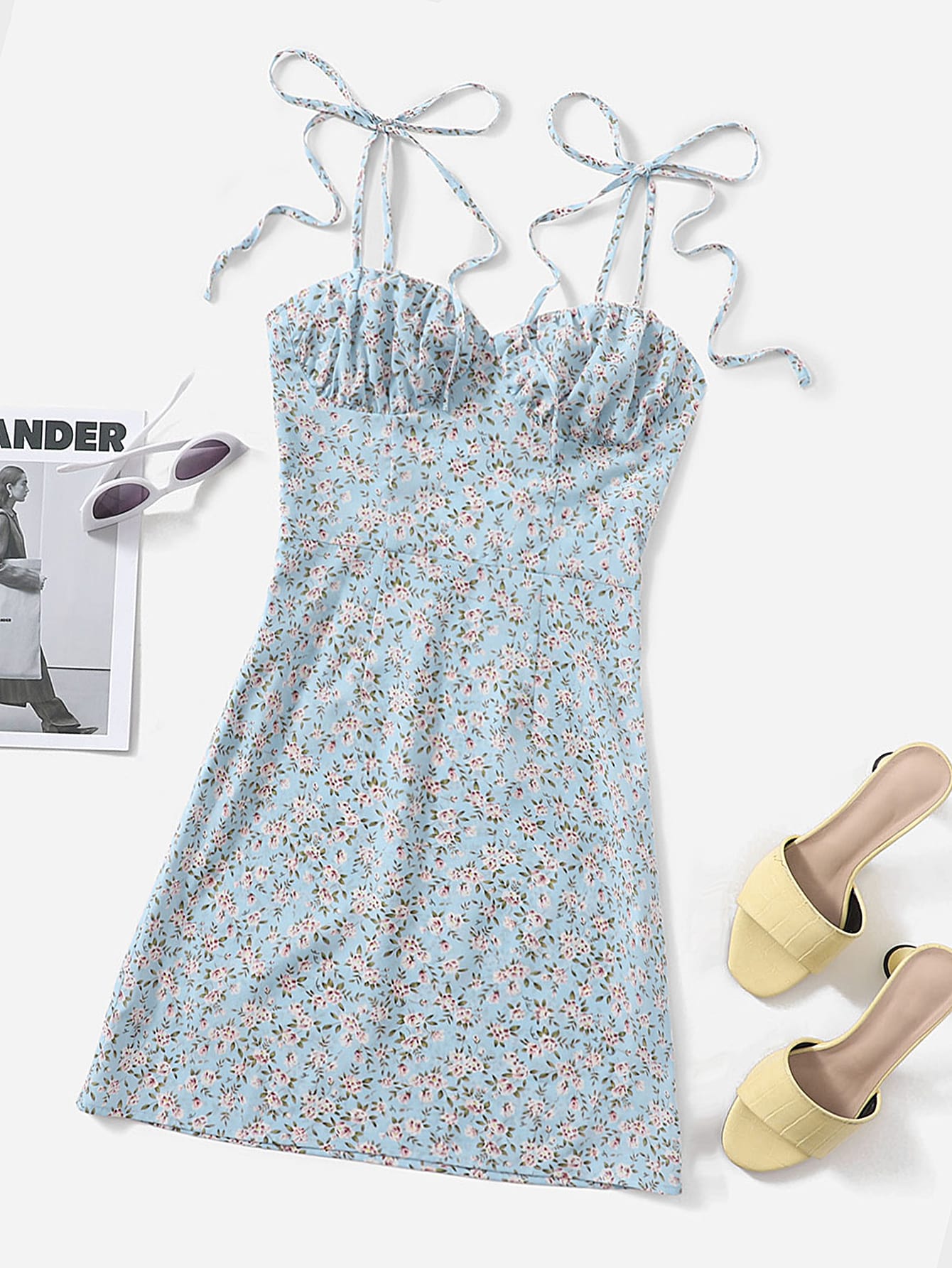 Vestido De Camisola Floral Con Cremallera En La Espalda Y Lazo En El Hombro.
