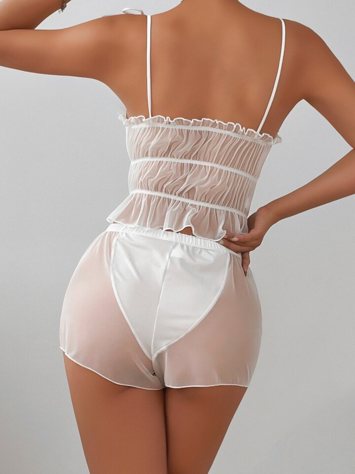 Set de lencería de hombros con cordón fruncido bajo con fruncido de malla